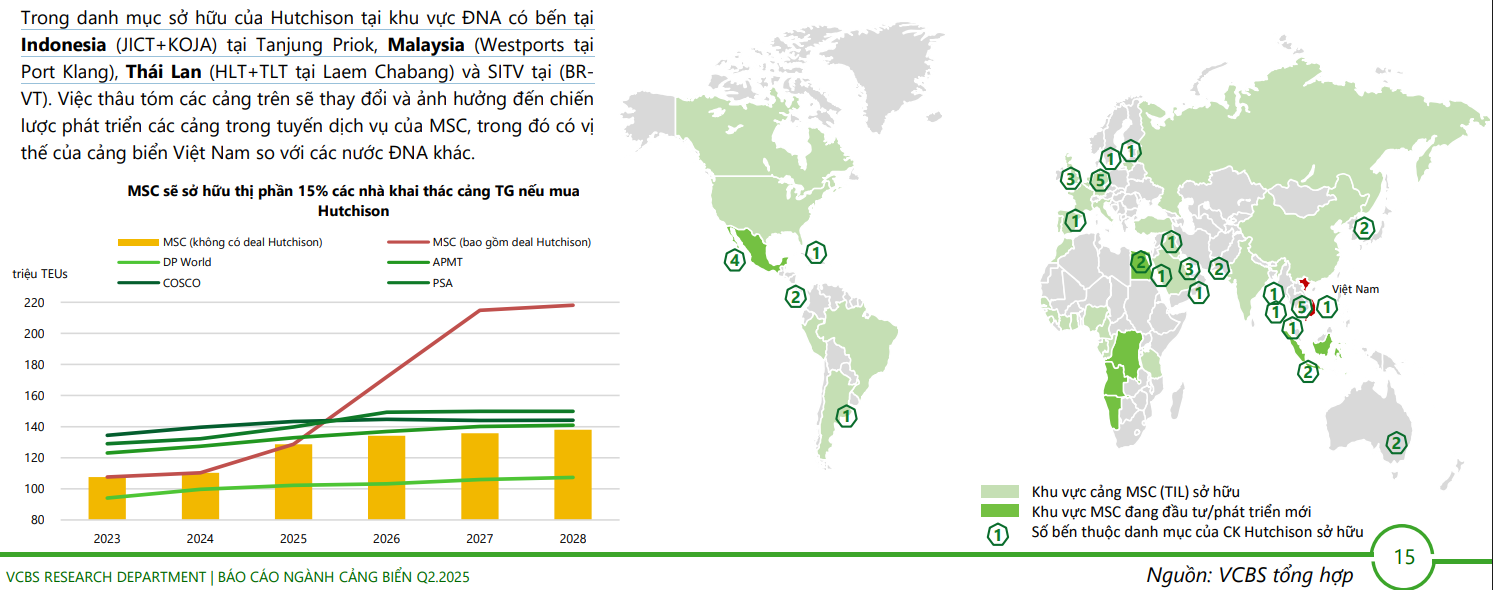 Nếu thực hiện thì MSC sẽ thành nhà khai thác cảng hàng đầu TG chiếm thị phần 15% toàn cầu cách xa so với PSA đứng thứ 2 chiếm ~ 10%.