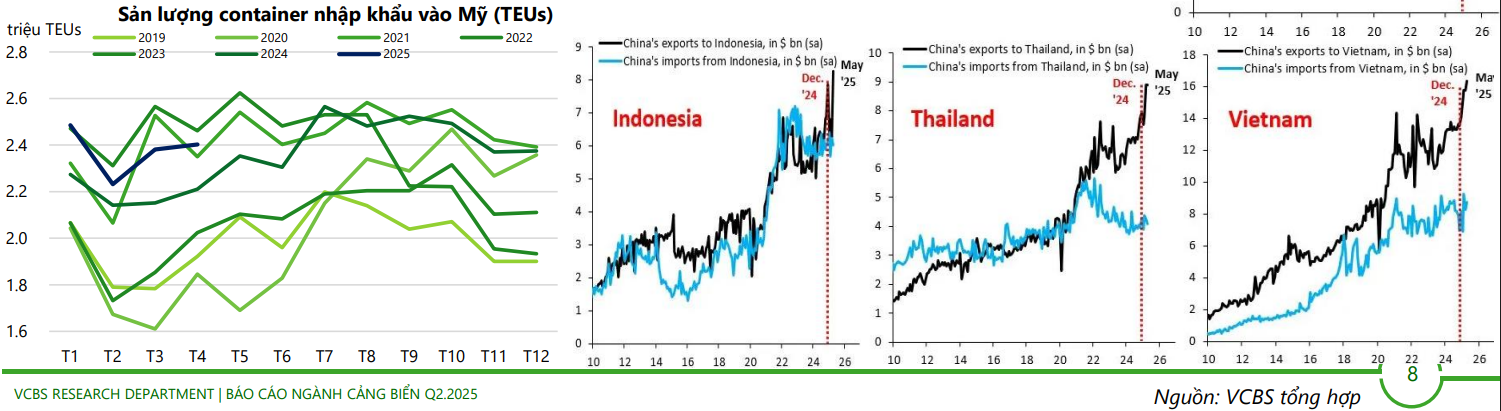 Mùa cao điểm vận chuyển hàng có thể đến sớm hơn vào T6-7 so với thông thường là ~ T8-9 do nhu cầu nhập hàng trước trong thời gian hoãn thuế 90 ngày. Do đó, kỳ vọng sản lượng sẽ vẫn tích cực trong Q2.2025. Tuy nhiên, sang 2H.2025 sẽ không còn tích cực như 1H.2025. -