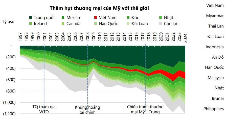 Dù TQ vẫn là đối tác thương mại hàng đầu của Mỹ, nhưng trong thời gian tới lượng NK có thể giảm do các công ty điều chỉnh chiến lược tìm nguồn cung ứng khác. Ngoài ra, sản lượng NK từ các nước như Việt Nam tăng, cho thấy sự dịch chuyển chuỗi cung ứng trong bối cảnh bất ổn địa chính trị và thương mại đang diễn ra.
