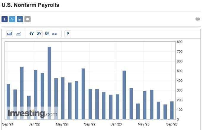 Thị trường kỳ vọng sẽ có thêm 170.000 việc làm trong tháng 9 với tỷ lệ thất nghiệp giảm từ 3,8% xuống 3,7%. . Một bước nhảy vọt bất ngờ nữa về tỷ lệ thất nghiệp sẽ là một tin tuyệt vời đối với Fed