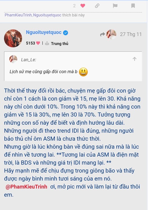 30% của 10% (tức là 3%) khả năng IDI về 15 sẽ thành 100% vào ngày mai. Lúc mà anh viết mấy dòng trên là IDI có giá 24-25. Nhanh quá!