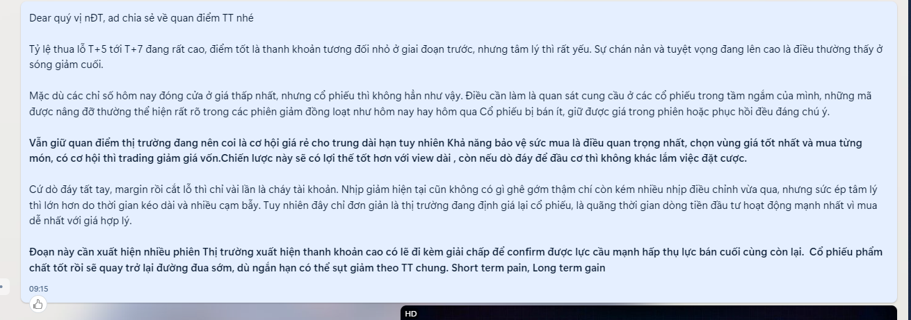 TT cũng đã giảm liền 4 phiên rồi. Phải có nhịp bật lại.