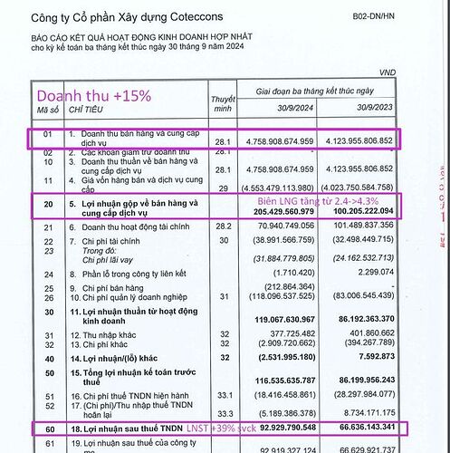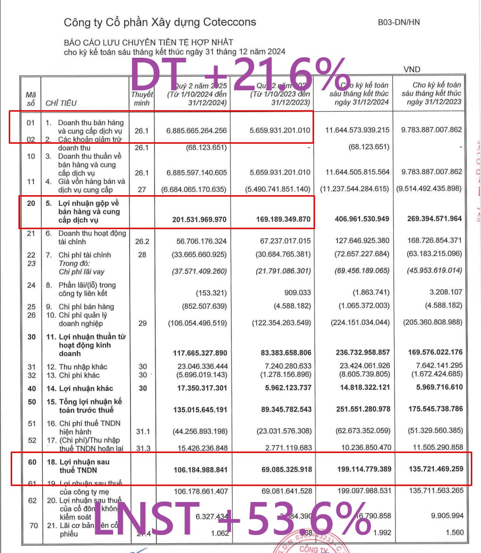 Kết quả kinh doanh chính q2 (niên độ 2025) :