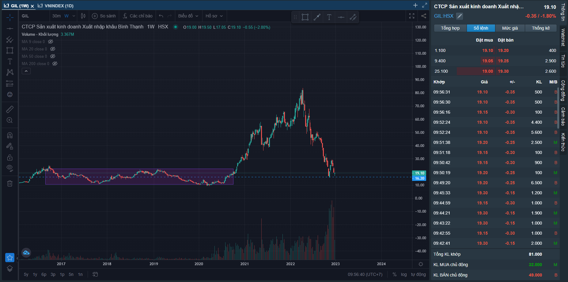 Chú ý GIL được, về những vùng tích lũy lớn cũ, có thể là đáy dài hạn. GĐ gần đây dính vụ kiện tụng lùm xùm thôi, nhưng giá k thấy bán mạnh nữa rồi. Tài sản cũng tốt, BĐS KCN.