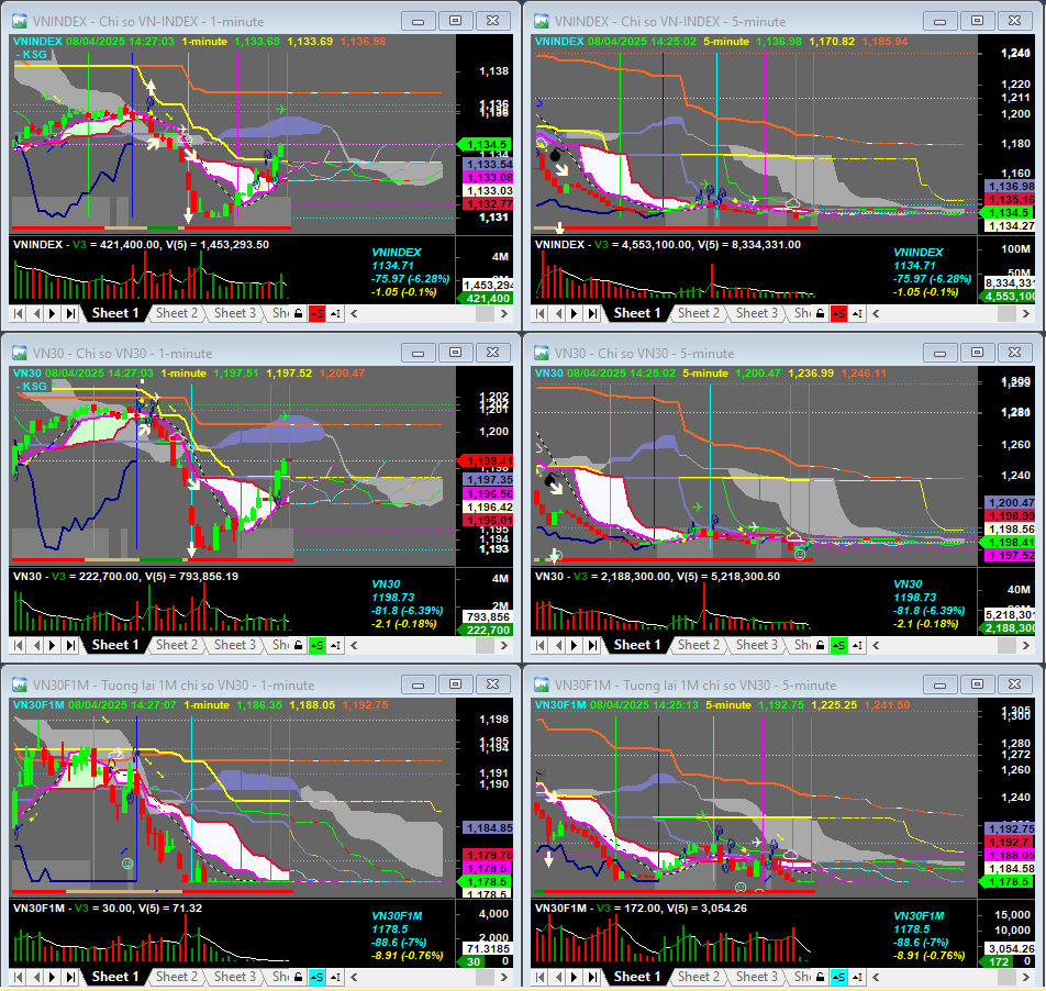 Phiên hôm nay việc bị nhốt sàn các mã nhỏ, kéo theo các mã trụ cũng bị call chéo và bị nhốt sàn luôn. Ngày mai thuế có hiệu lực, nếu việc đàm phán có kết luận giảm thấp hơn 46% hoặc kéo dài thêm thời gian có hiệu lực thì mới có khả năng TT có đợt hồi phục.