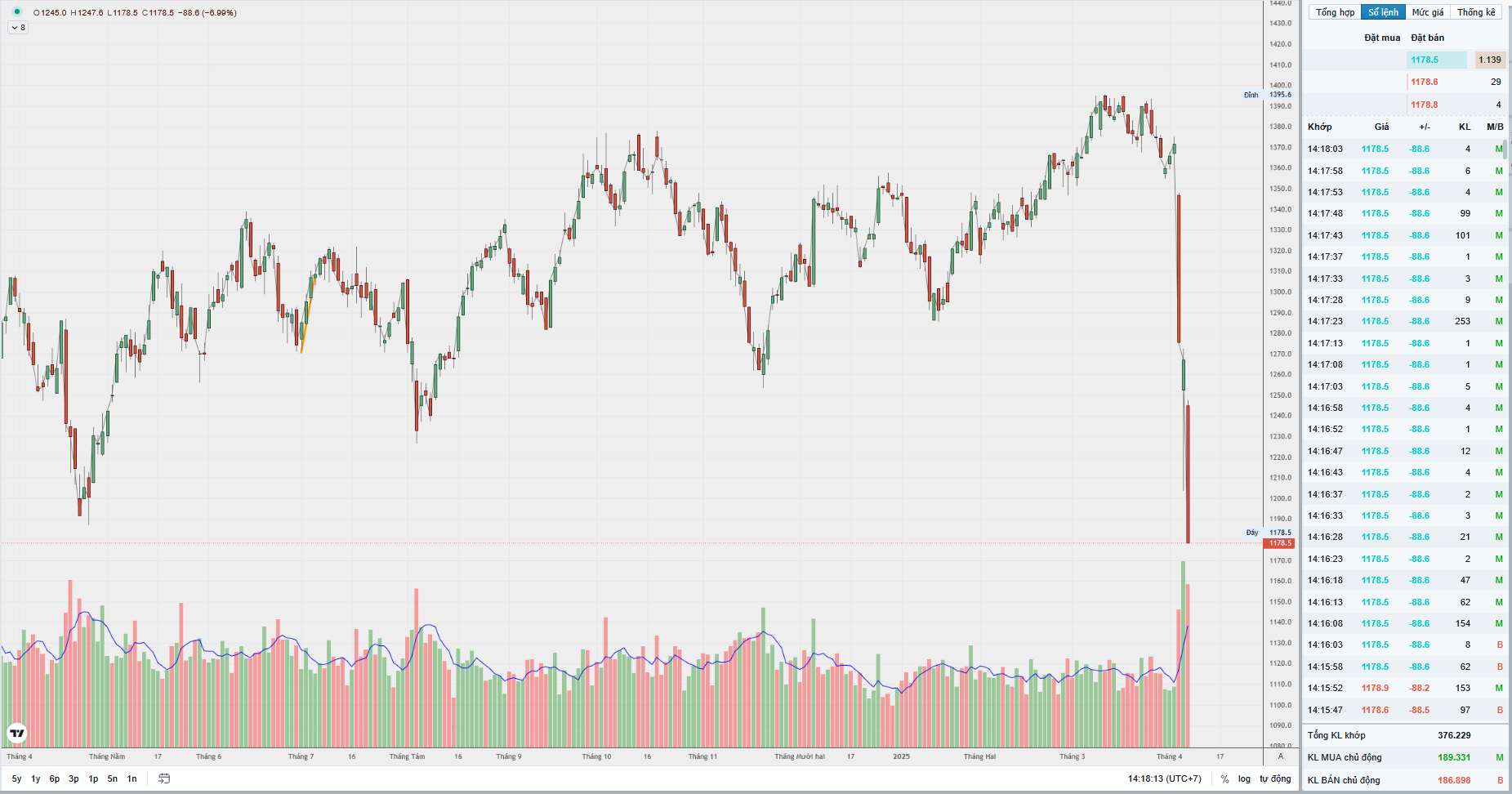 Đang callmargin nhưng lực mua cũng yếu quá. Thủng đáy toàn tập. PS thêm cây sàn. Đánh đấm gì nữa? Trump ơi là Trump.