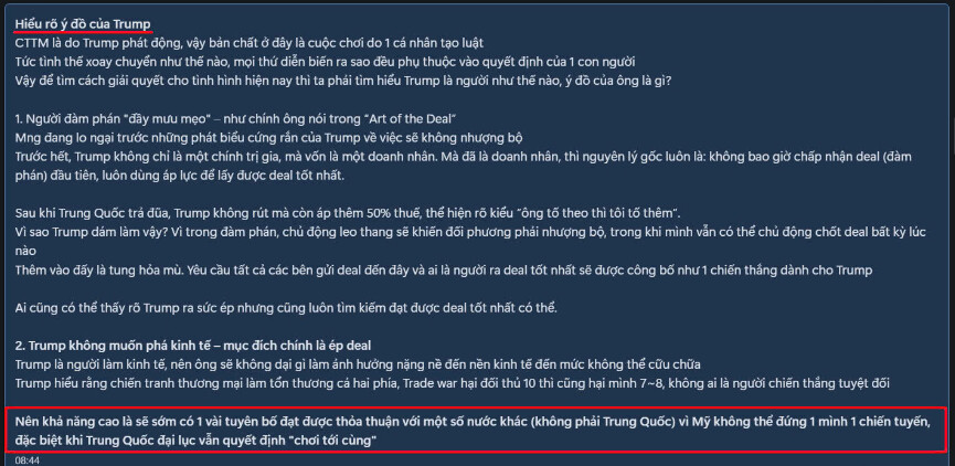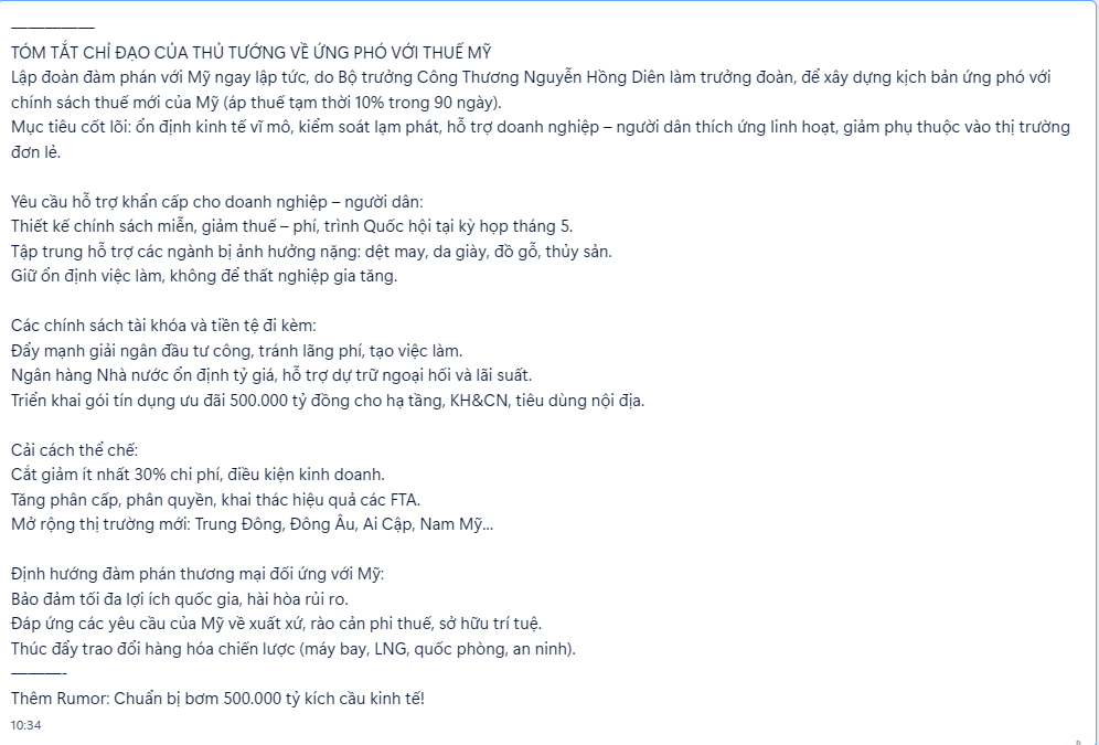 Tuy nhiên, thị trường vẫn phản ứng tiêu cực: S&P 500 giảm 2,8%, lợi suất trái phiếu 2 năm giảm xuống 3,81%. Dù Trump tuyên bố tạm hoãn áp thuế 90 ngày với phần lớn đối tác, Trung Quốc vẫn bị áp thuế tới 125%, còn mức 10% áp dụng với các nước khác vẫn giữ nguyên.