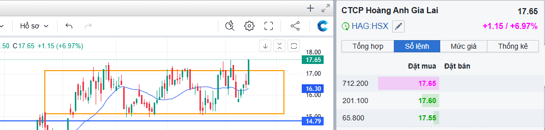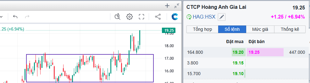 - Phiên 18/7, HAG cho tín hiệu break nền giá tích lũy đi kèm thanh khoản xác nhận, phiên 30/7 cổ phiếu có quay trở lại test đỉnh ngắn hạn với cung cạn → lấy đà cho nhịp tăng vượt đỉnh 3 năm