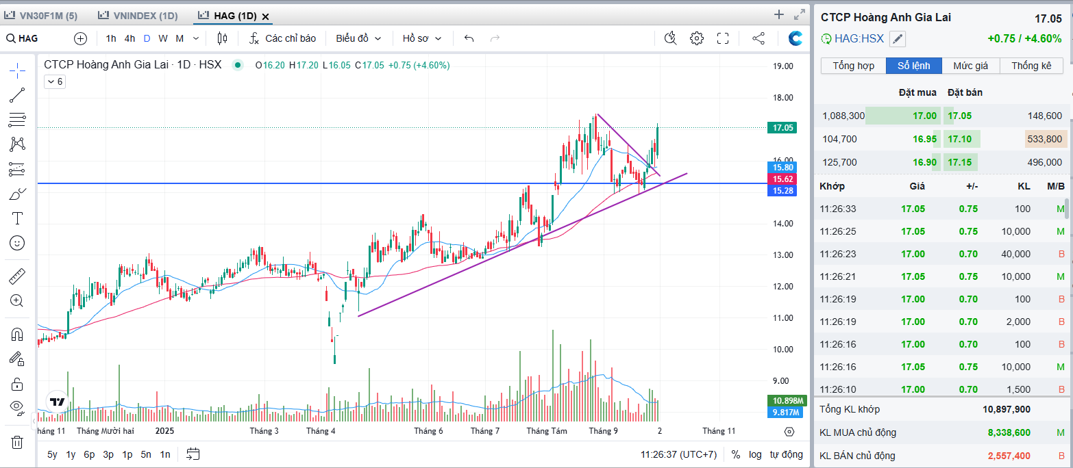 - Dù chưa được cấp margin, HAG liên tục có thanh khoản cao trên 10–20 triệu cổ/ngày, cho thấy sức hút đầu cơ vẫn còn rất mạnh.