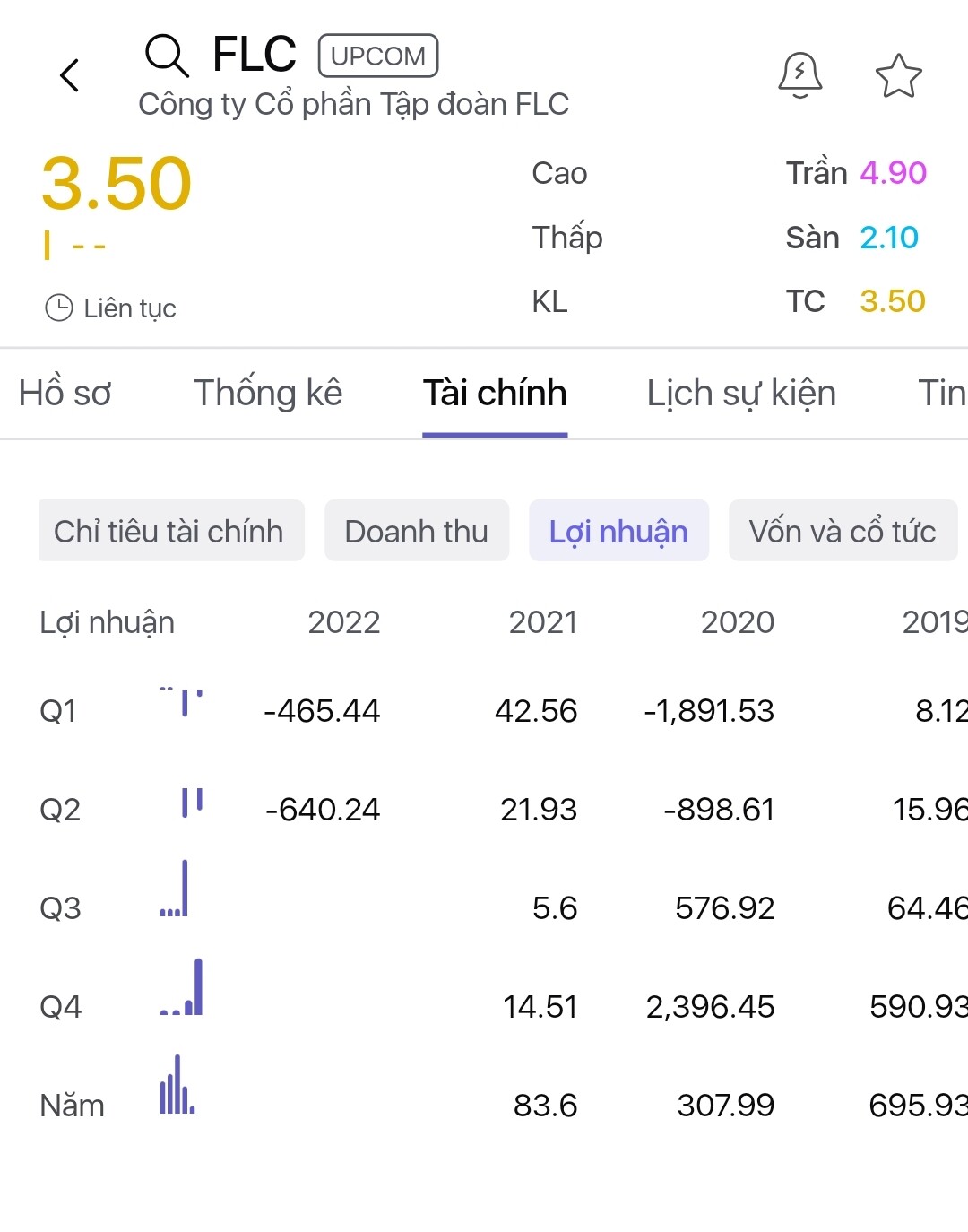 Doanh thu FLC rất lớn nhưng lợi nhuận thì bé xíu. Hai quý gần nhất với thời điểm tuột xích thì FLC lỗ nặng nề.