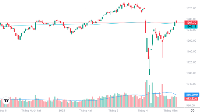 Hai là, tăng tỷ trọng các doanh nghiệp niêm yết ít chịu ảnh hưởng bởi yếu tố thuế quan. Trong đó, chúng tôi nhìn thấy cơ hội từ các doanh nghiệp vốn hóa lớn thuộc ngành tài chính, thép, công nghiệp, công nghệ thông tin và tiện ích;