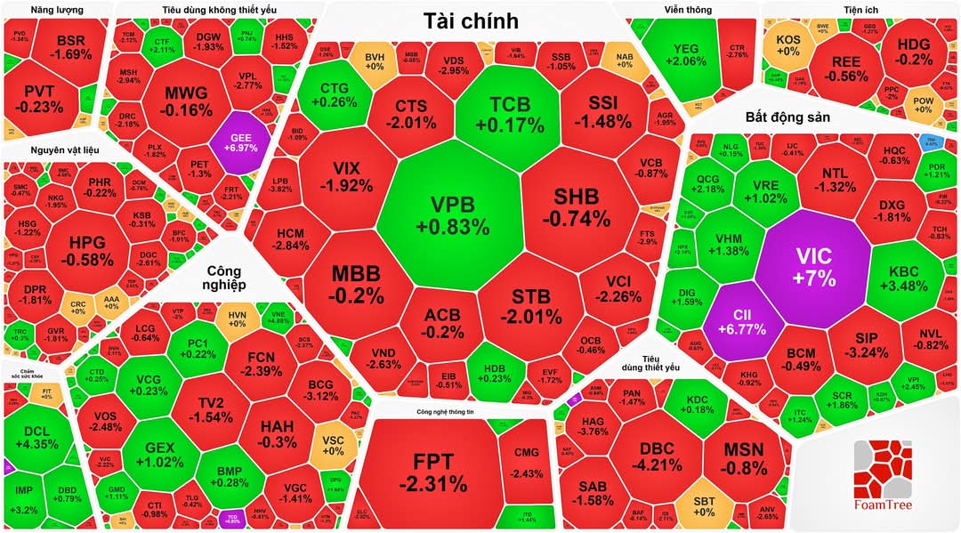 Chào tuần mới bằng một sắc đỏ thẫm lan tỏa khắp các nhóm ngành, VN-Index lại mất mốc 1300.