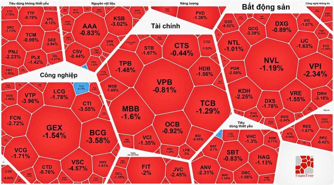 Giảm nhanh như một cơn gió, VN-Index kết phiên trong sắc đỏ, nhiều cổ phiếu đang tăng mạnh cũng đã rơi tự do.