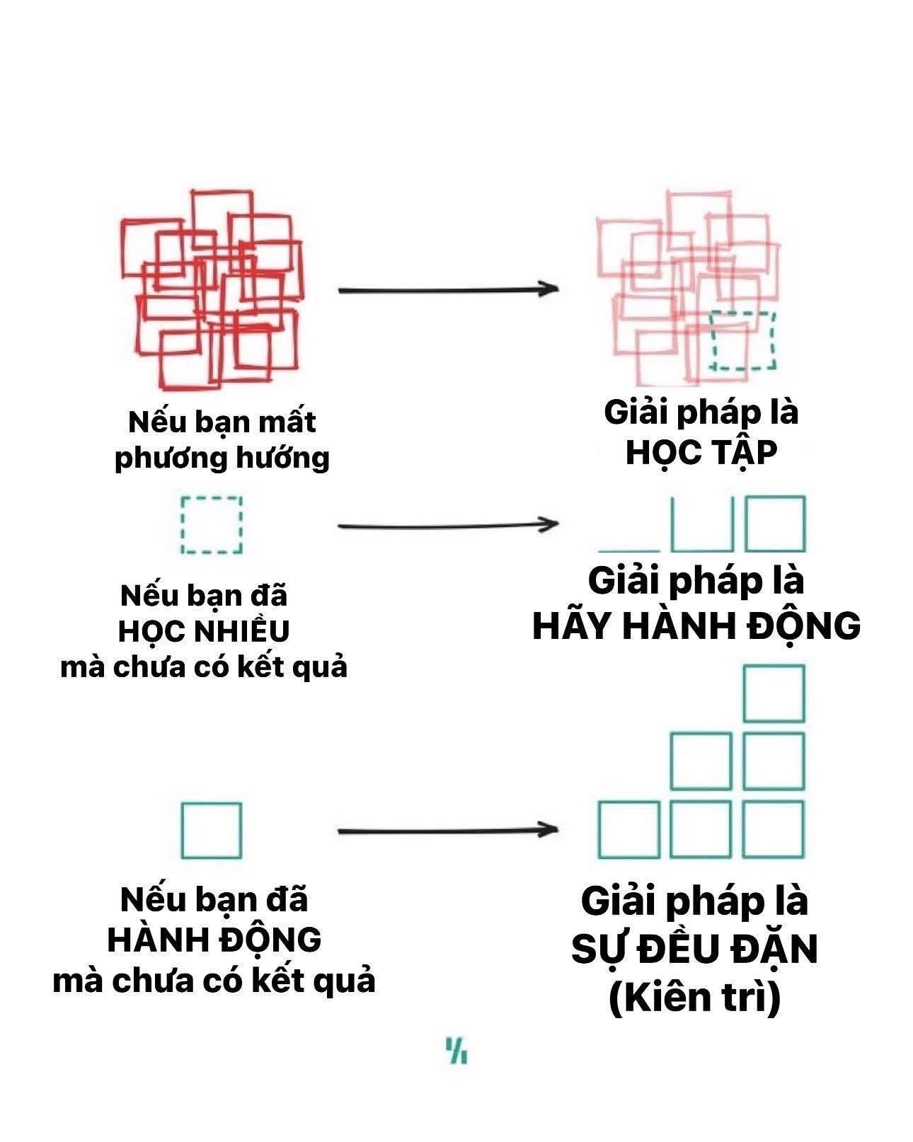 Nếu bạn cảm thấy mình mông lung, không biết điều gì phù hợp với mình, không biết mình sẽ đi đâu về đâu, thì giải pháp không phải là hành động mù quáng, mà là bạn cần phải học tập không ngừng. Kiến thức nó giống như tấm bản đồ, nó không đưa bạn đến đích ngay, nhưng ít nhất là khi có kiến thức thì bạn không đi lạc đường.