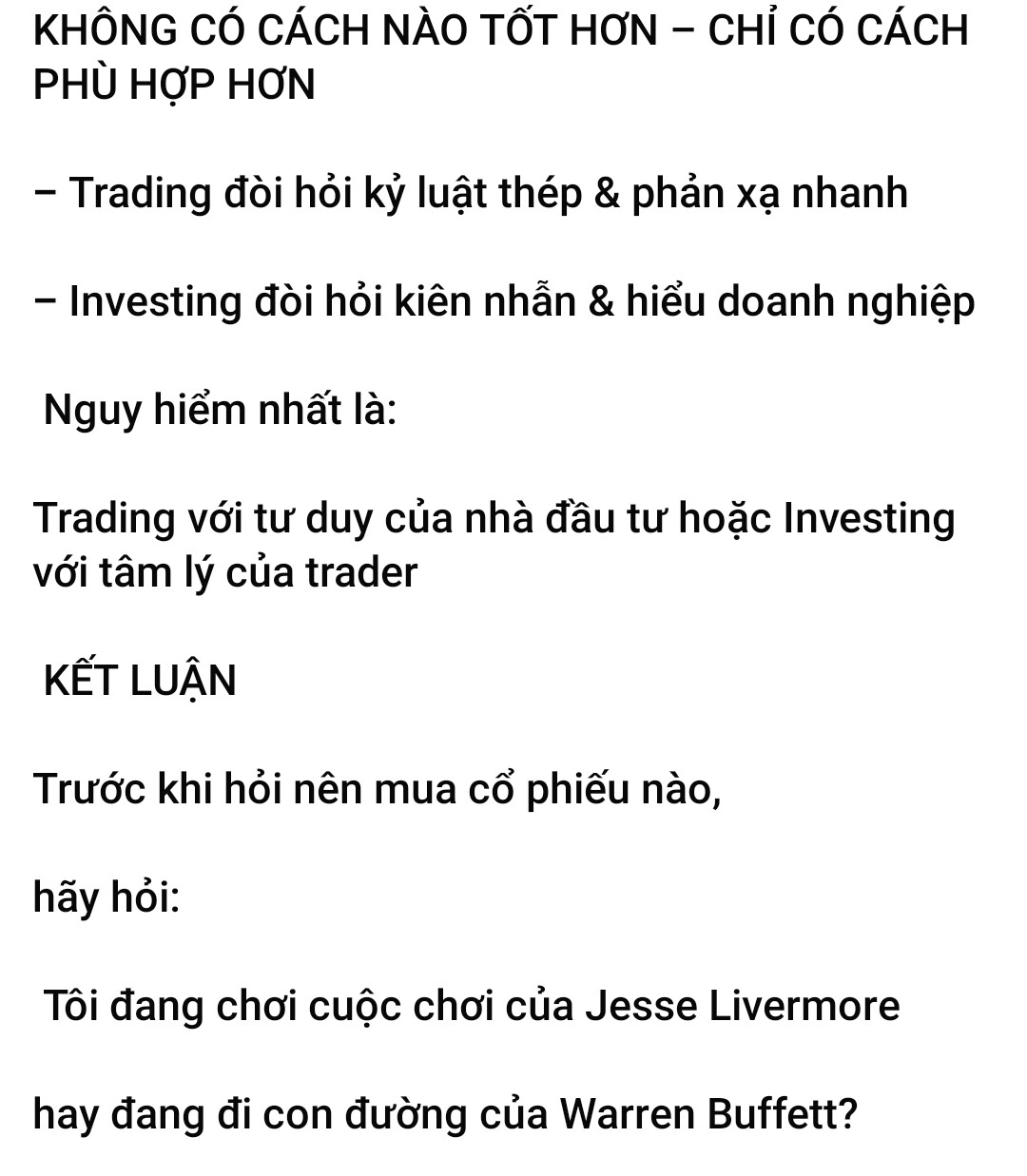 Khi bạn tư duy đúng, phương pháp và quy tắc đầu tư của bạn sẽ không bao giờ đi chệch đường ray.