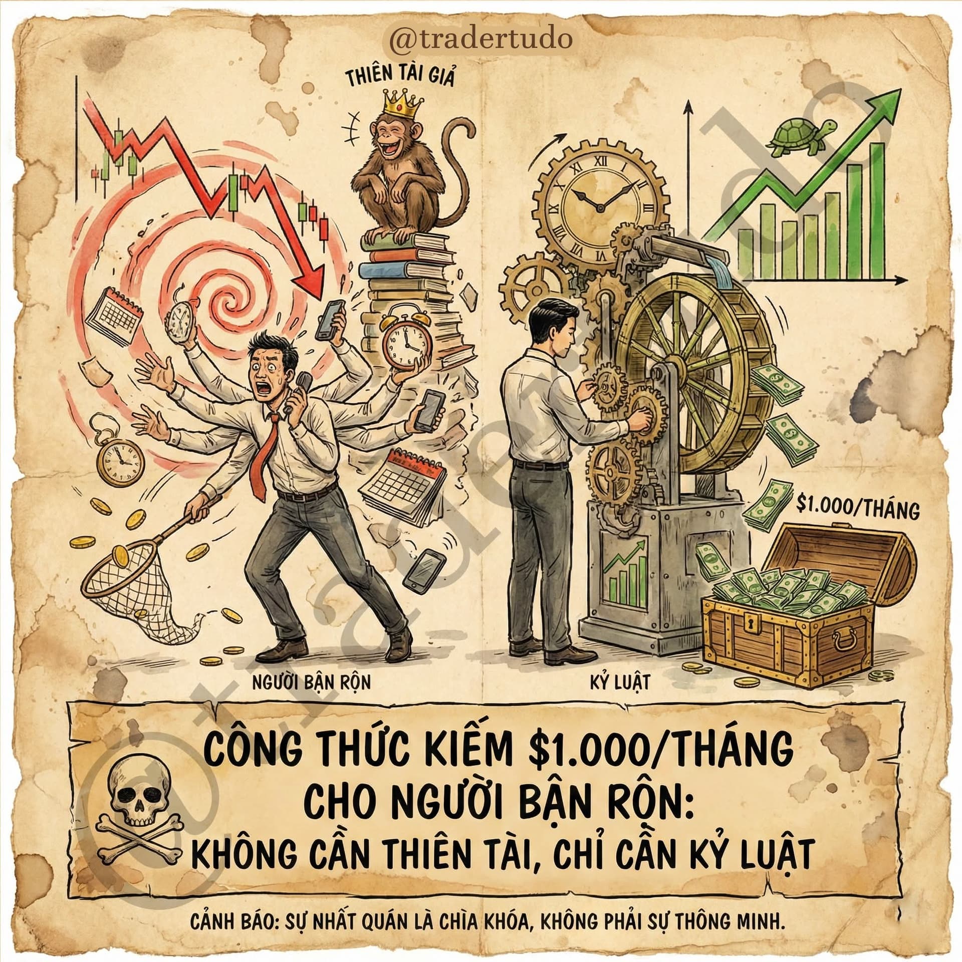 Thị trường không dành phần thưởng cho những kẻ nóng vội và mong muốn làm giàu nhanh. Nó thưởng cho người có tư duy làm chủ xác suất và kỷ luật - kiên trì hành vi có sự lặp lại ổn định.