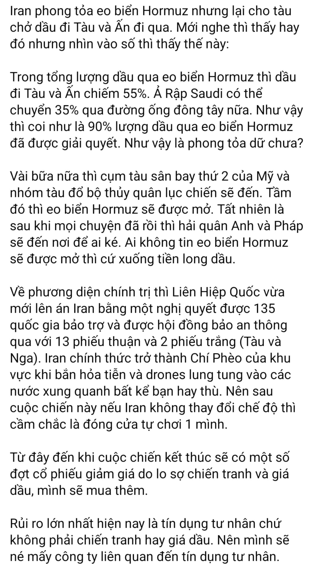 Hôm qua, Tổng thống Trump gửi đến Iran “tối hậu thư”, rằng hoặc tránh xa Hormuz, hoặc bị phá huỷ hoàn toàn các cơ sở và hạ tầng xuất khẩu dầu khí.