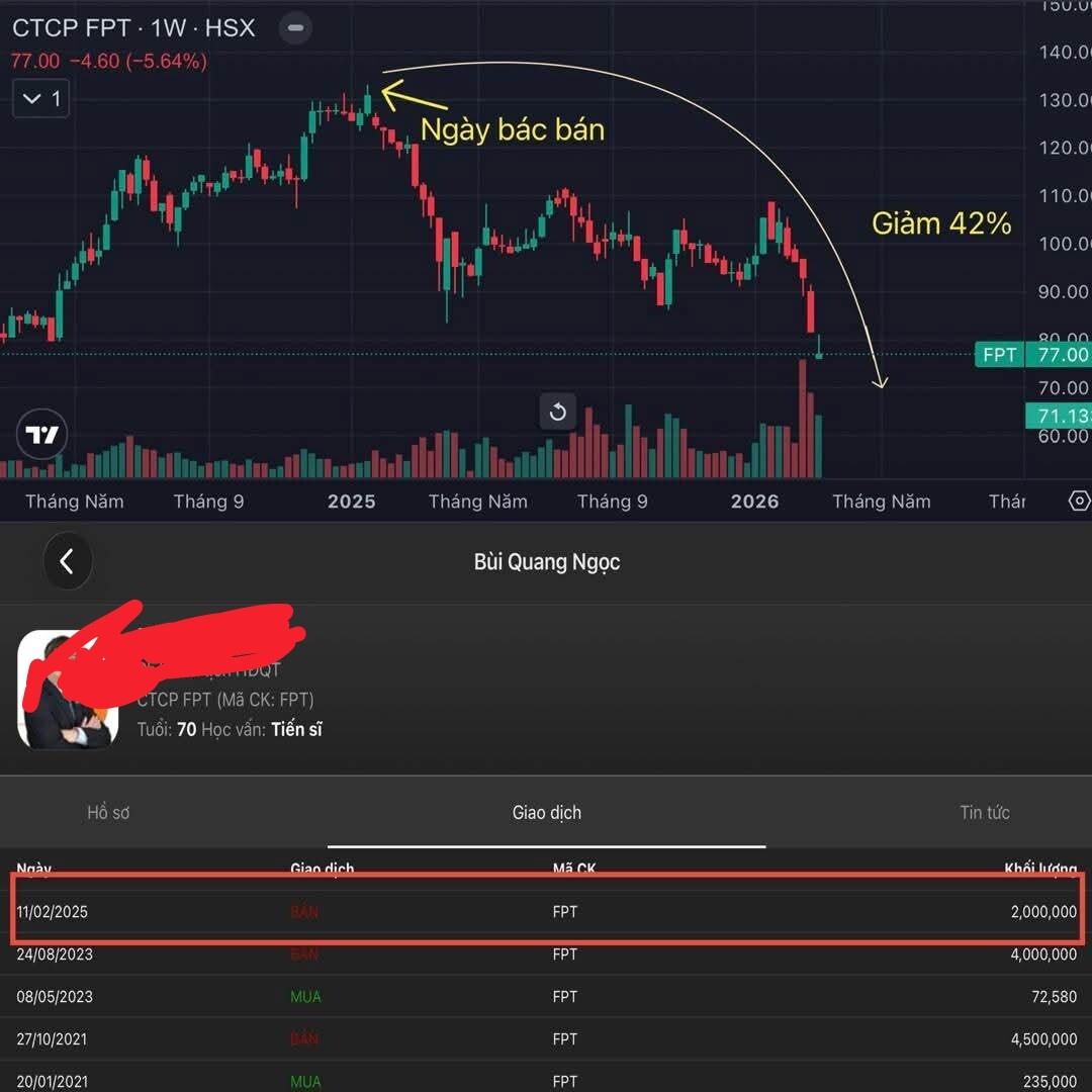 Ngày hôm đó, FPT đang tăng mạnh, AI bùng nổ đầy triển vọng. Không ai hiểu vì sao bác lại “vác hàng” ra bán 2 triệu cổ phiếu tỉnh bơ.
