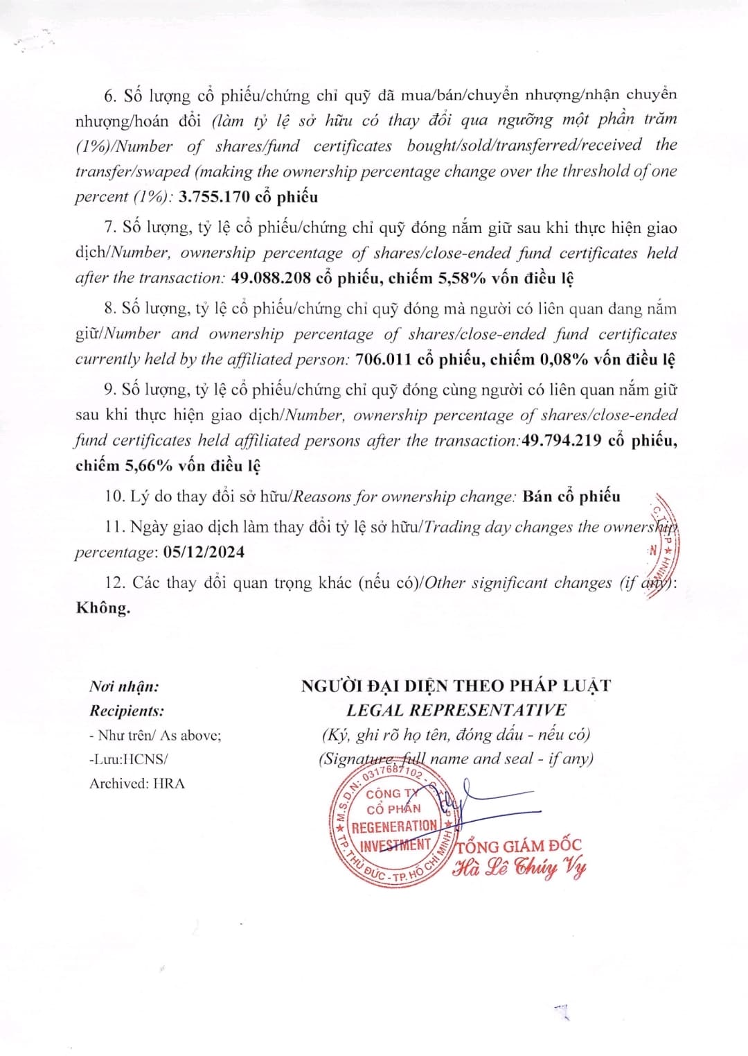 Cổ đông lớn, sở hữu hơn 52 triệu cổ phiếu, người ta bán đi 3,7 triệu cổ phiếu.