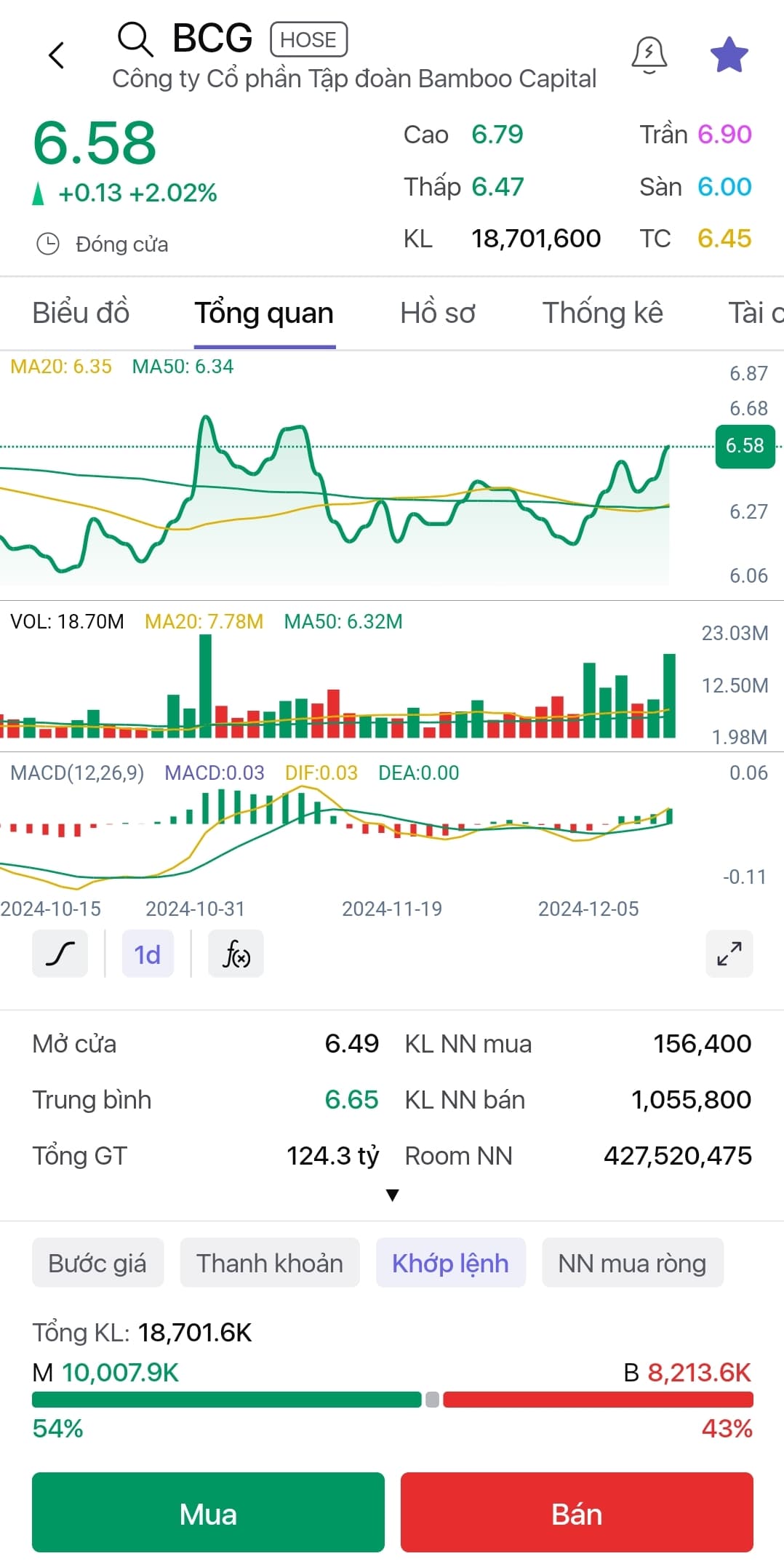 một phiên tăng với vol khá ổn. Bên bán vẫn rất quyết liệt, với đặc điểm cổ phiếu loãng, có nhiều nđt nhỏ lẻ như BCG thì rất khó tăng mạnh.