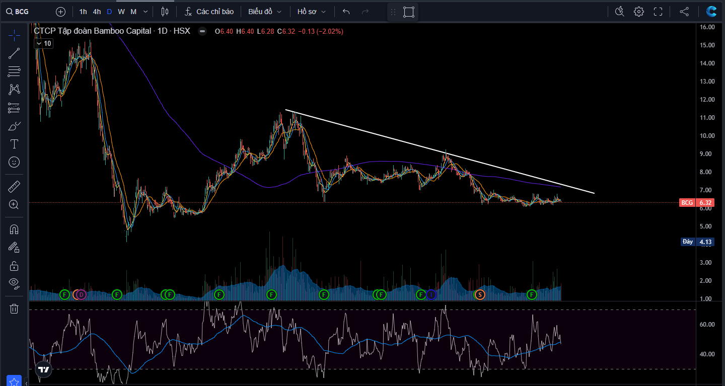 BCG chart vẫn downtrend nằm dưới MA200 ko biết các cụ kì vọng gì chứ e chưa thấy smart money tham gia cổ này