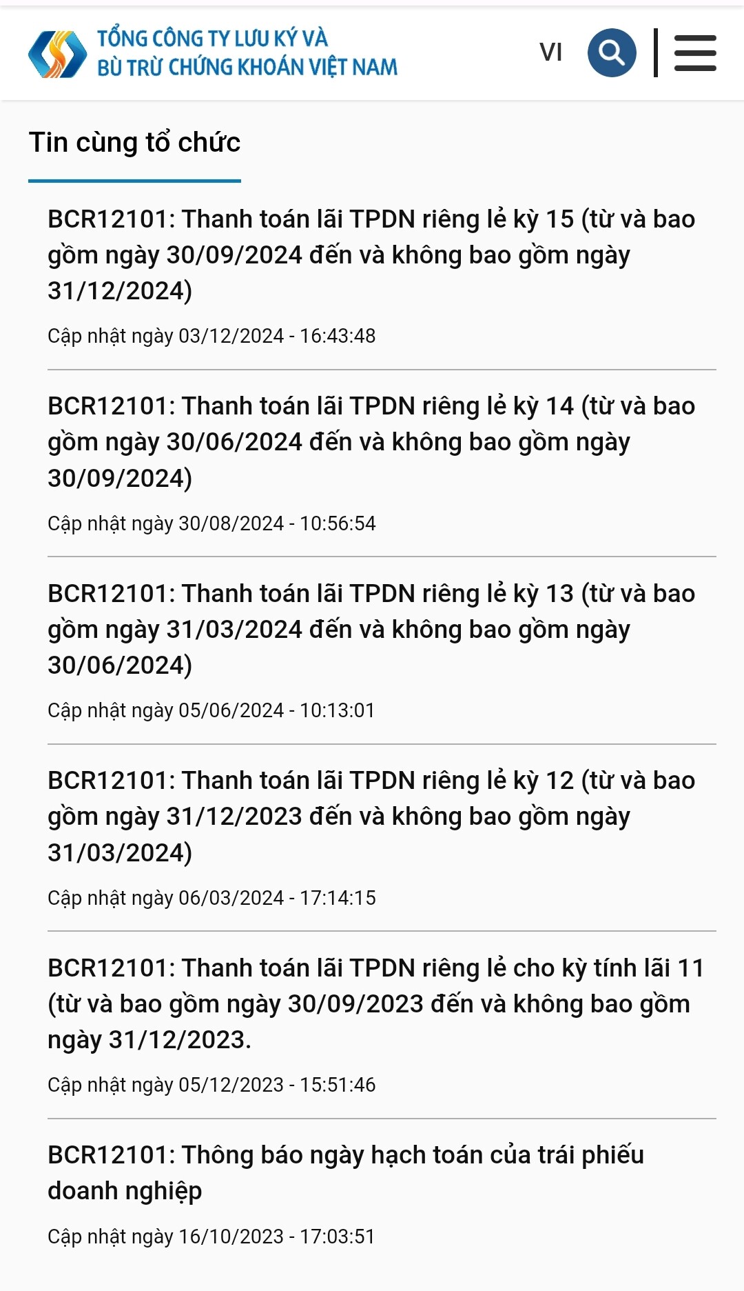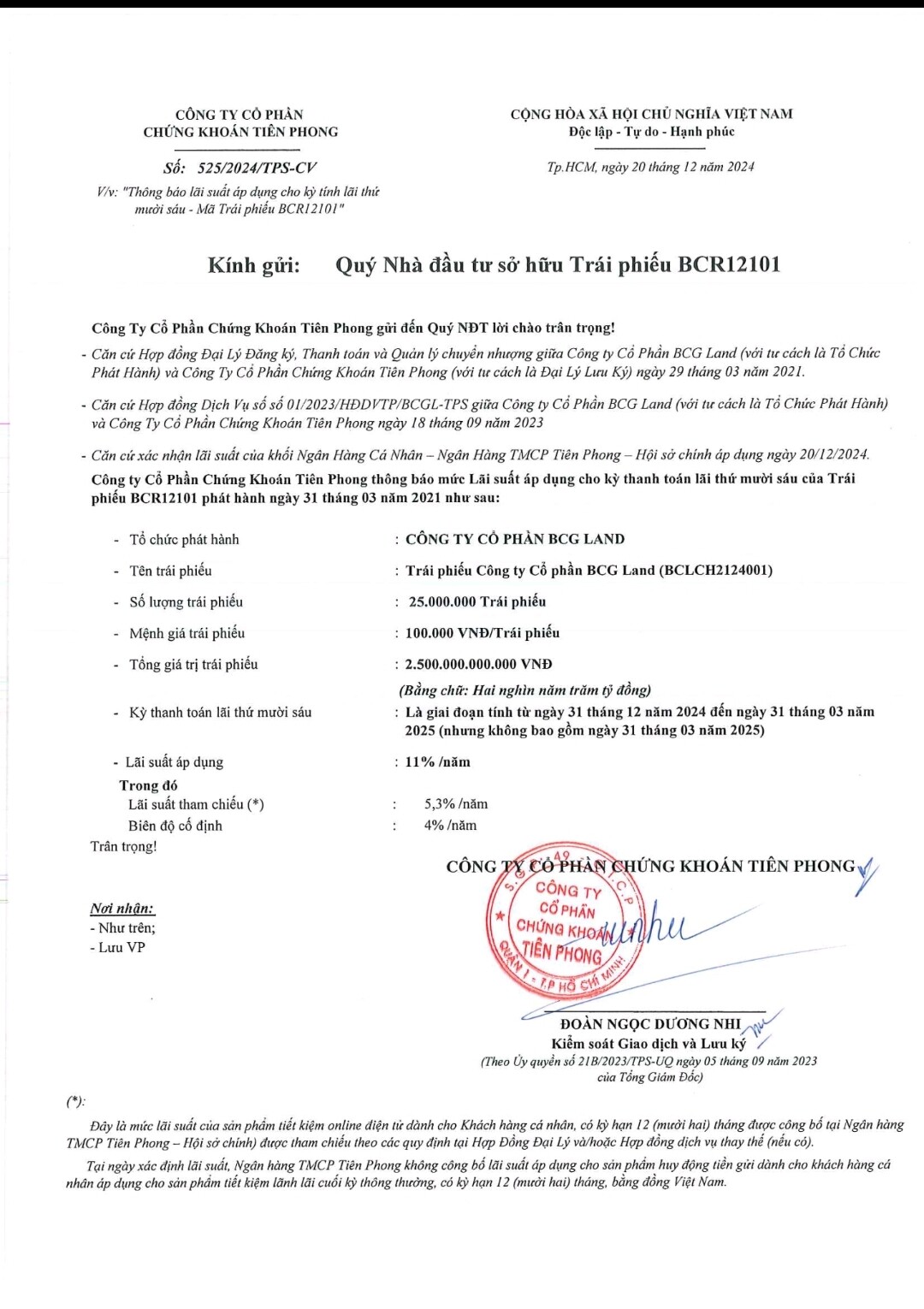 Các công ty chứng khoán có liên quan đã thông báo mức lãi suất cho kỳ trái tức 16, tham chiếu 5,3%, thả nổi +4%, dự kiến chi trả vào 30.3.2025