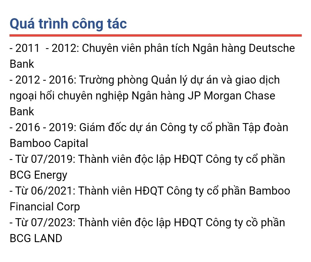 Trước đây ông là Thành viên HĐQT độc lập, hiện nay được bổ nhiệm làm Chủ tịch Hội đồng Quản trị của BCG Energy vào tháng 3 năm 2024.