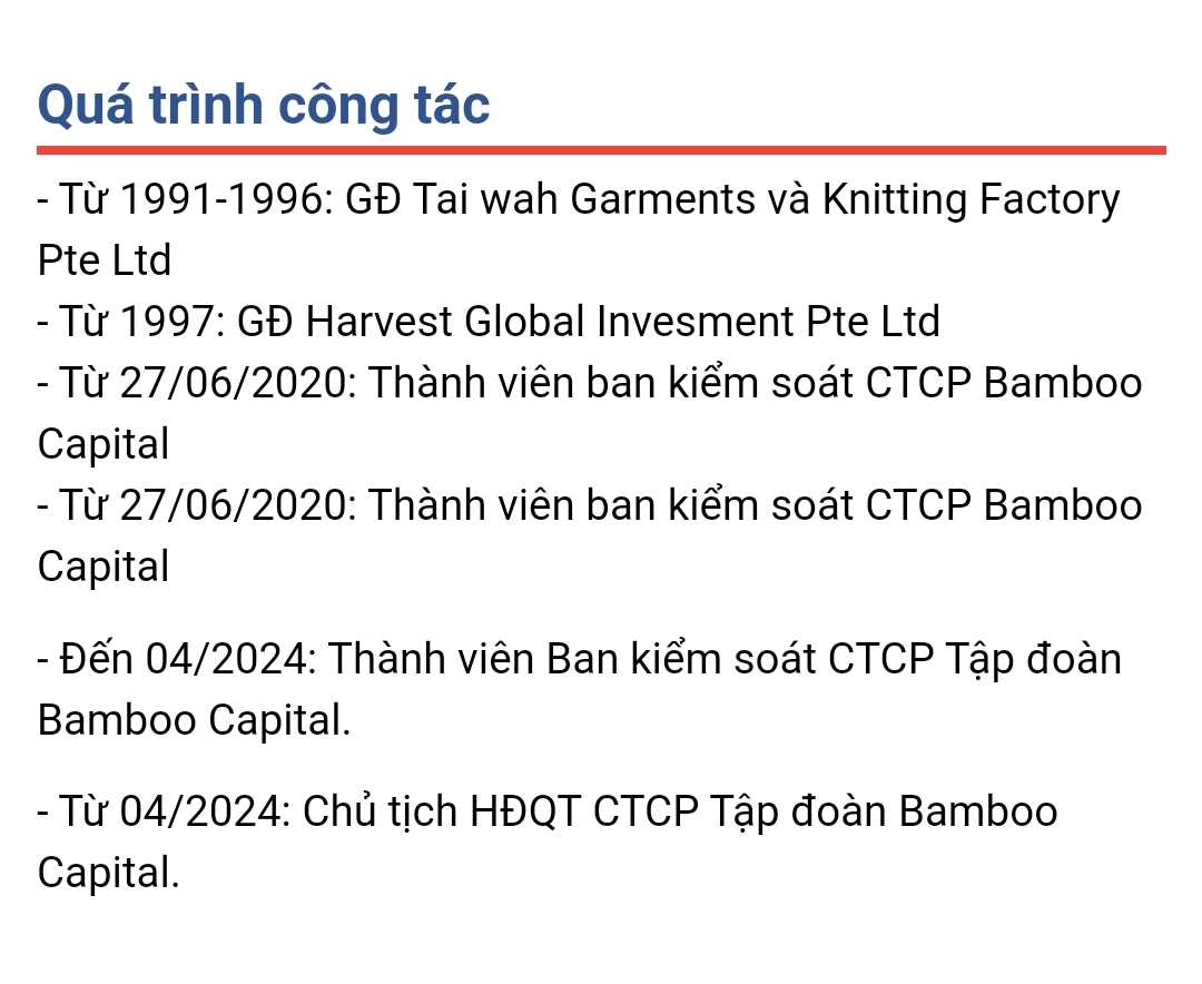 Ông có nhiều năm kinh nghiệm trong lĩnh vực tài chính – ngân hàng, bất động sản… và có mối quan hệ sâu rộng với các nhà đầu tư trong và ngoài nước.