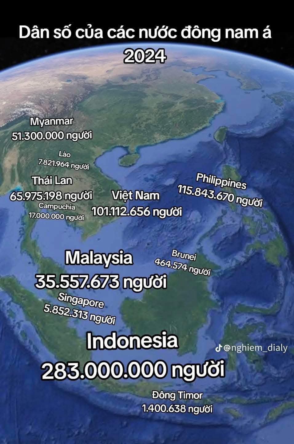 Dân số khu vực ASEAN gần 700 triệu người, lớn hơn Bắc Mỹ, hơn Nam Mỹ, hơn EU, hơn liên bang Nga, hơn các nước Ả Rập.
