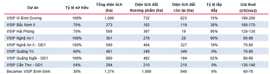 Năm 2024, VSIP đã nhận được giấy phép đầu tư tại VSIP Thái Bình, VSIP Quảng Ngãi II và Becamex VSIP Bình Thuận, nâng danh mục sở hữu lên 18 KCN. VSIP III Bình Dương là dự án trọng điểm của VSIP. Đến nay, dự án đã thu hút được nhiều dự án FDI lớn như dự án nhà máy LEGO, dự án Pandora và mới nhất là dự án SAM DigitalHub xây dựng trung tâm dữ liệu trên diện tích 50 ha đã được ký kết vào đầu năm nay. Theo dự phóng, diện tích cho thuê đất tại VSIP III Bình Dương đạt 60 ha năm 2025 nhờ hợp đồng đã ký. Ngoài ra, VSIP đã khởi công xây dựng các KCN tại Lạng Sơn, Thái Bình, Hà Tĩnh và Quảng Ngãi.