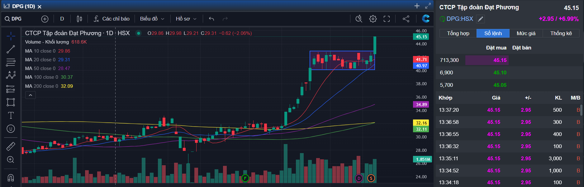 - Một số nhận định kỹ thuật cũng cho rằng DPG đang breakout theo mô hình “cốc lớn” – test đỉnh, kỳ vọng tiếp tục tăng
