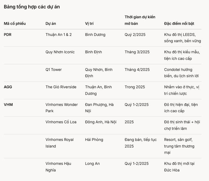 Nhìn rộng hơn, kinh tế Việt Nam 2025 dự báo tăng trưởng 6,5-7% (theo WB), FDI đổ vào khu công nghiệp tăng vọt, nhất là Bình Dương, Long An – nơi BĐS đang trỗi dậy. Chính sách hỗ trợ cộng với xu hướng kinh tế, ngành BĐS có đất diễn. Vậy trong những doanh nghiệp đang đua nhau bung dự án, ai đáng để mắt? Mình lọc ra ba cái tên đang được bàn tán nhiều trên sàn: PDR (Phát Đạt), AGG (An Gia) và VHM (Vinhomes). Cùng mổ xẻ xem họ có gì trong tay.