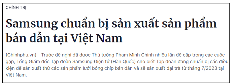 - Cũng trong năm 2022, Tập đoàn Samsung đã đầu tư thêm gần 1 tỷ USD để mở rộng hoạt động sản xuất của Nhà máy tại Thái Nguyên. Đến nay, tổng vốn đầu tư của tập đoàn này vào Việt Nam đã lên hơn 19 tỷ USD.