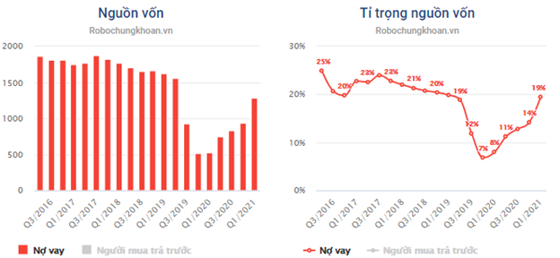 So với các doanh nghiệp cùng ngành thì tỉ lệ nợ vay trên là khá thấp và trong các quý gần đây nợ vay công ty có tăng lên do công ty đang tiếp tục đi mở rộng quỹ đất để duy trì sự tăng trưởng trong tương lai, cụ thể quỹ đất như thế nào chúng tôi sẽ thông tin trong phần sau.