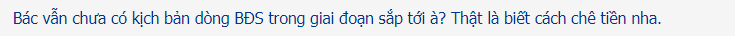 Bác vẫn chưa có kịch bản dòng BĐS trong giai đoạn sắp tới à? Thật là biết cách chê tiền nha.