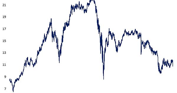 Các bác kích vào biểu đồ để nhìn thấy trục hoành chỉ thời gian từ 1990 tới nay