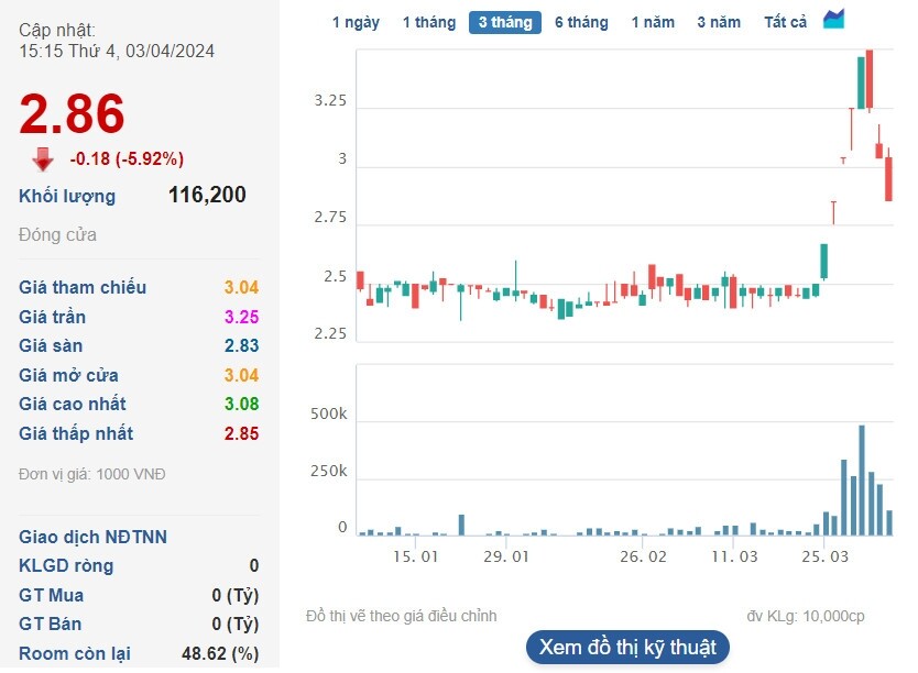 Vừa trải qua chuỗi tăng trần liên tiếp, cổ phiếu SVD đã lập tức quay đầu giảm mạnh trong 3 phiên tiếp theo...