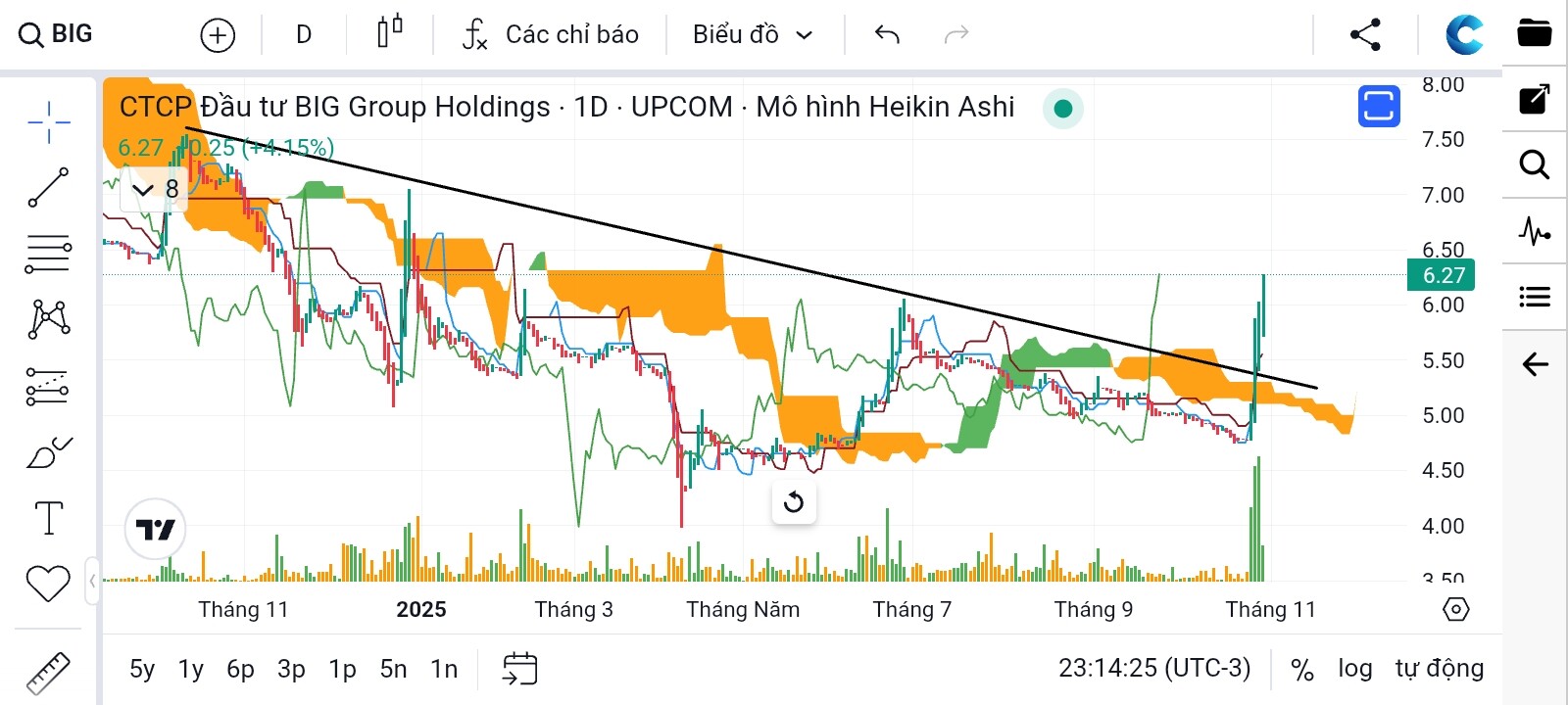 BIG quá tiềm năng giá đáy theo ptkt là chân sóng uptrend lên 17,về game tăng vốn trong quý 4,nên nó vào sóng thần,về cơ bản hiện tại giá đang khá rẻ p/e~7 là lúc bắt đầu tư khá ngon,ăn cả con cá lên 17 mới bán