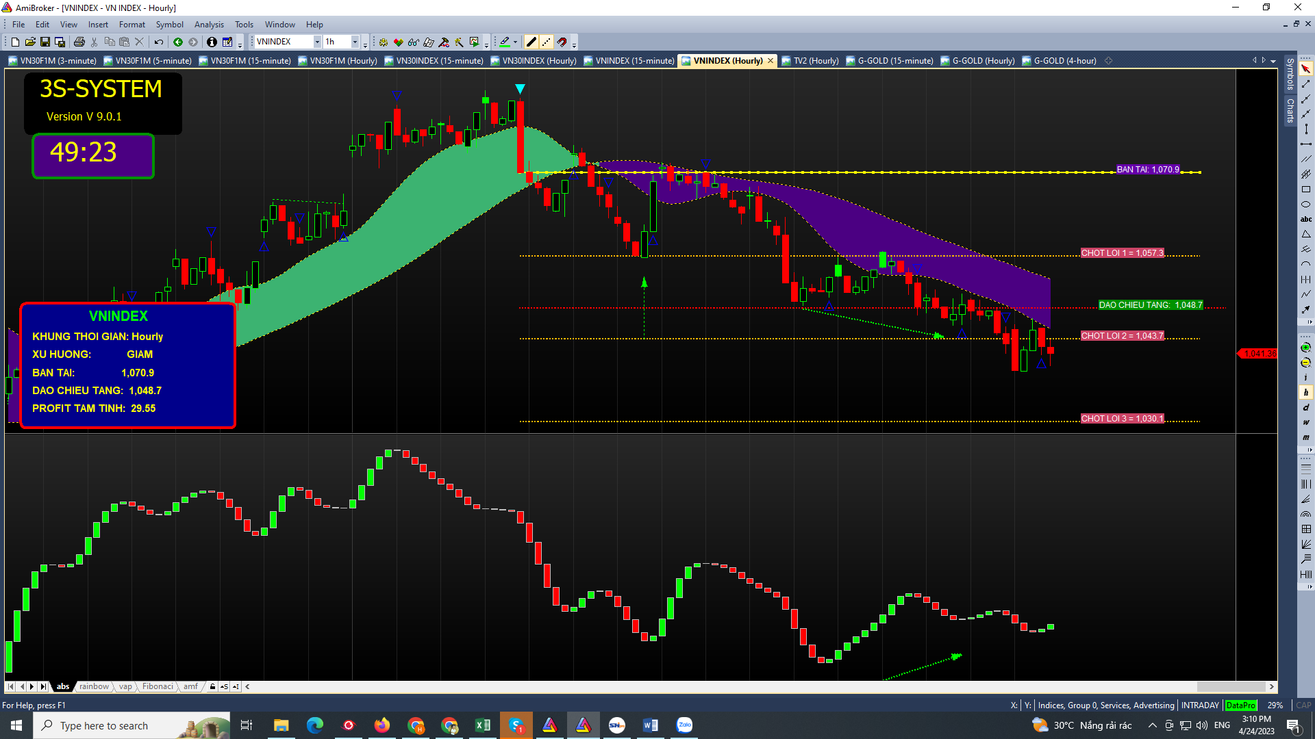 Thị trường đã mở biên độ giảm hôm nay, có vẻ tâm lý nghỉ ngơi trước lễ lại lớn hơn nhu cầu tích lũy đón sóng sau kỳ nghỉ. Hôm nay áp lực bán tăng thấy rõ, một phần do hoạt động giao dịch của các quỹ, một phần từ nhu cầu giảm vị thế tránh khoảng thời gian trống dài. Dù là gì thì vẫn tạo mức lỗ gia tăng cho các vị thế ngắn hạn.