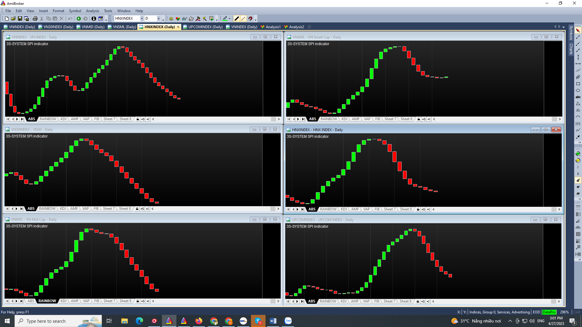 Thị trường hôm nay khá tốt, dù chỉ số yếu, nhưng cổ phiếu mạnh ở diện rộng. Các cổ phiếu đầu cơ nhỏ bắt đầu hút tiền nổi bật và tăng giá dữ dội. Một cao trào đầu cơ nhóm này đã hình thành và đó là lúc nên thận trọng trong quyết định đuổi giá.