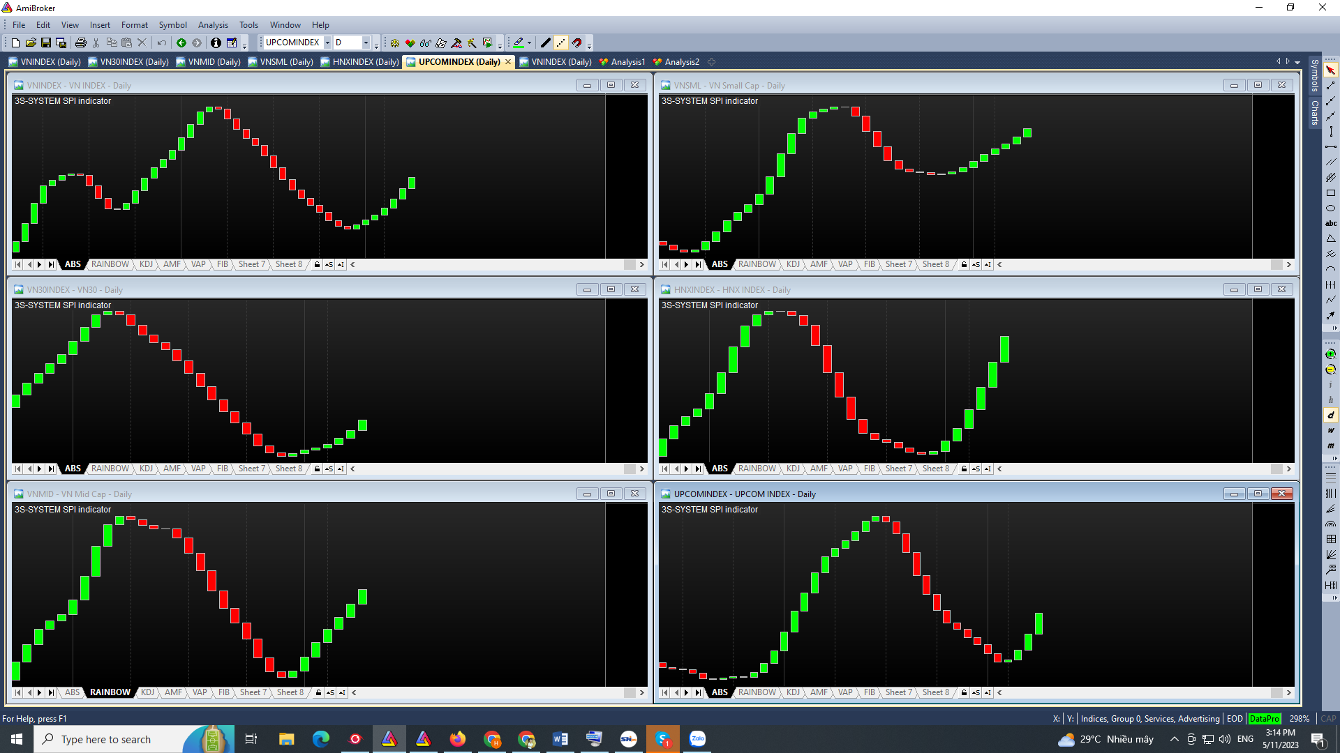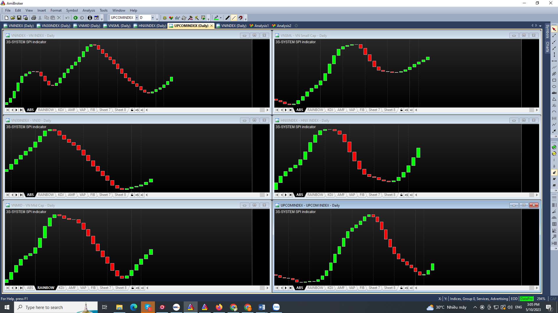 Chỉ báo tương quan cung cầu SPI xanh to dần thể hiện mua vẫn nắm giữ thế trận và đang chủ động mạnh lên. Tuy nhiên bắt đầu có sự phân hóa khi SML yếu đi và Vn30 mạnh lên