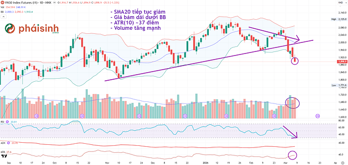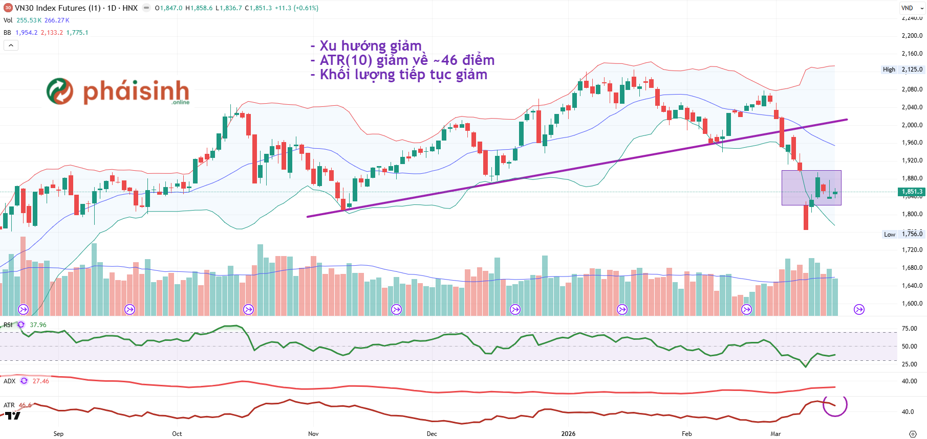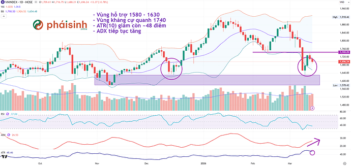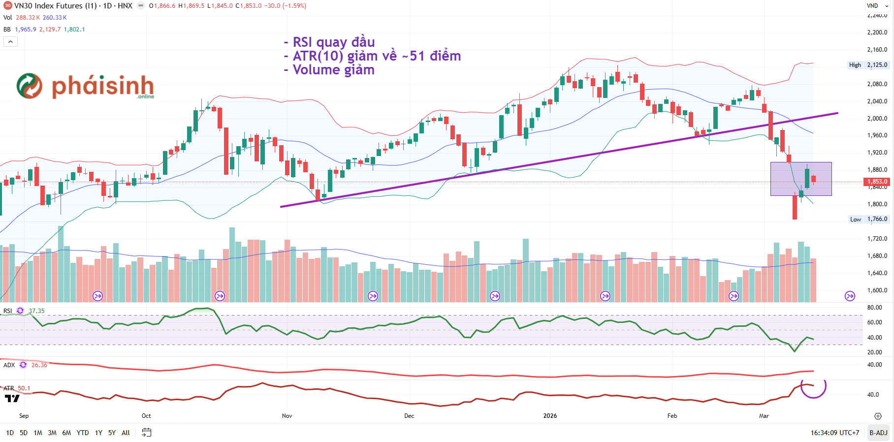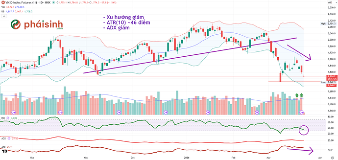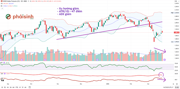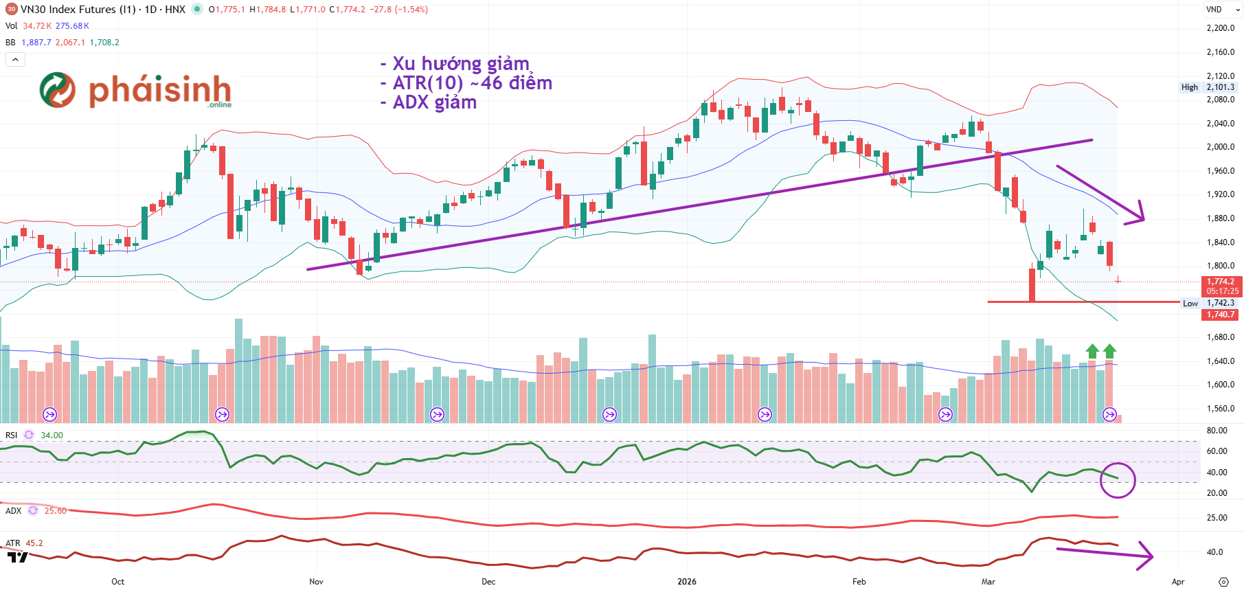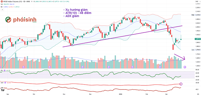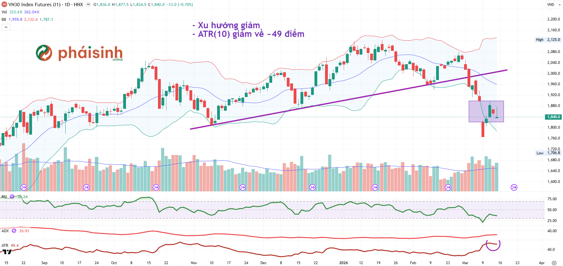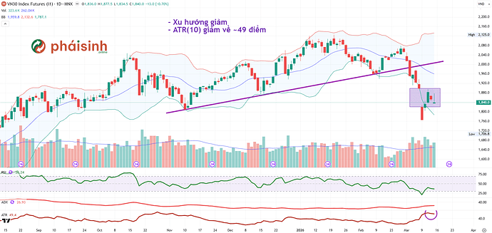 – ATR(10) ~29 điểm và tiếp tục giảm.
