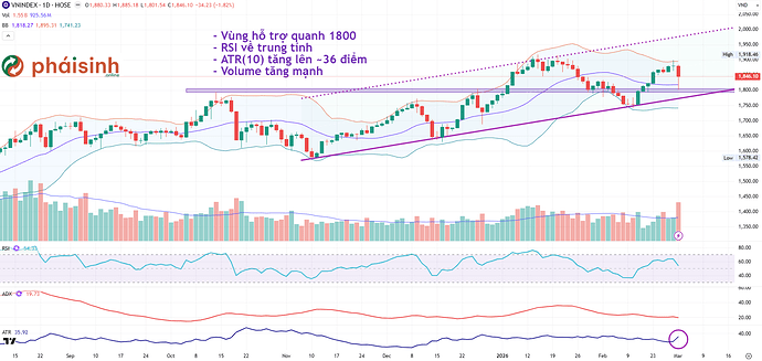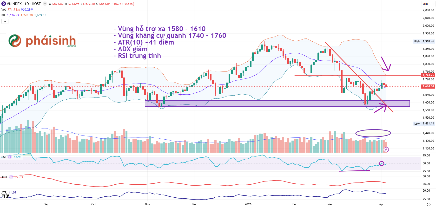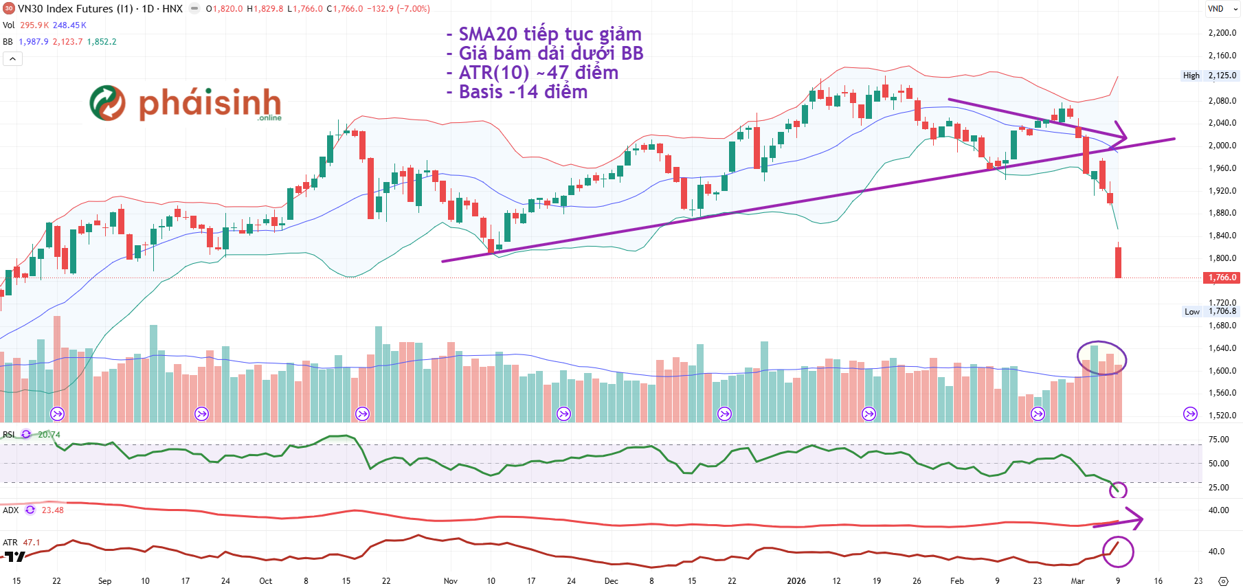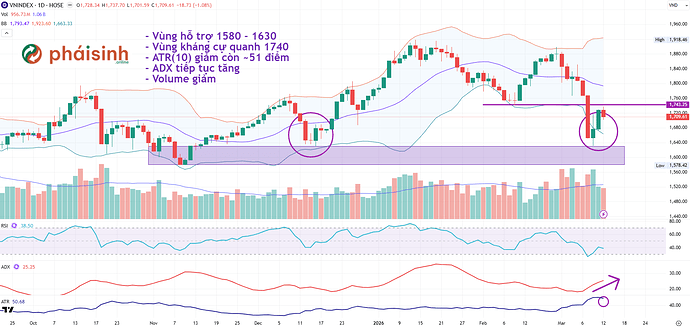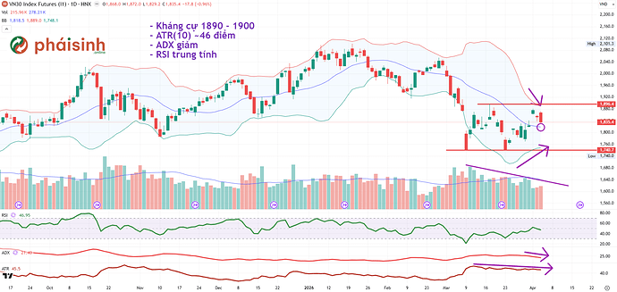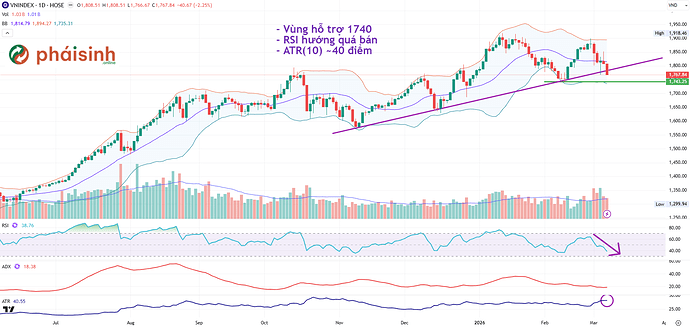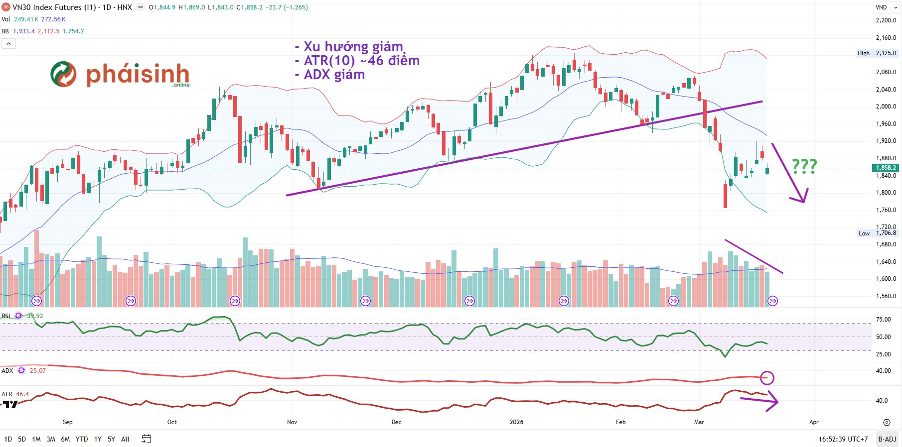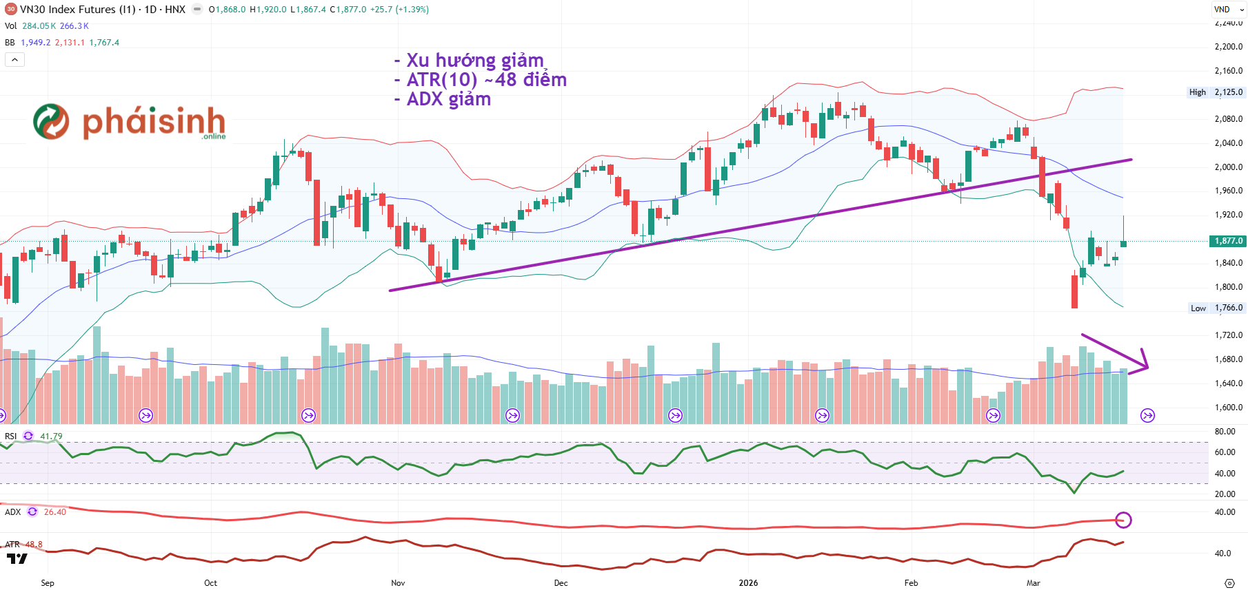 – ATR(10) ~29 điểm và tiếp tục giảm.