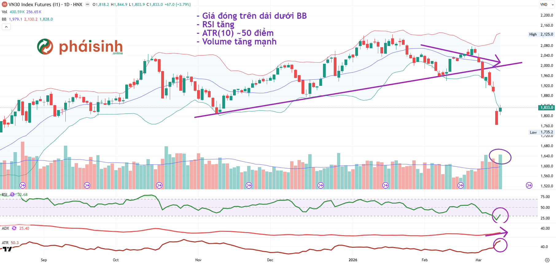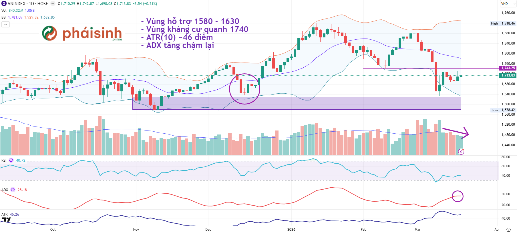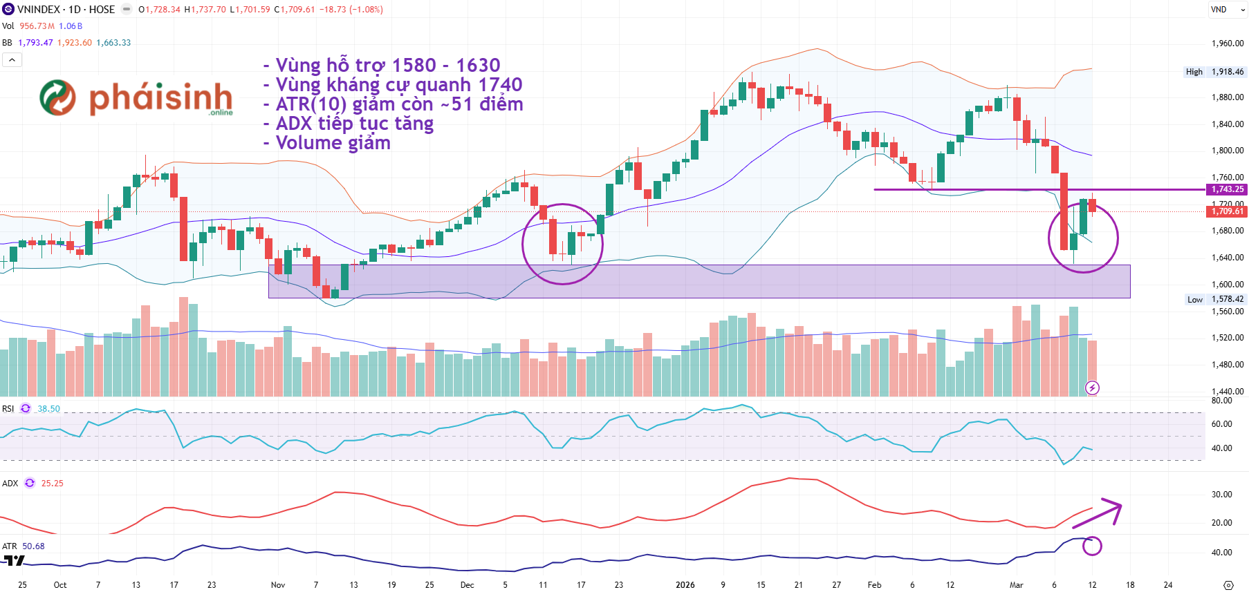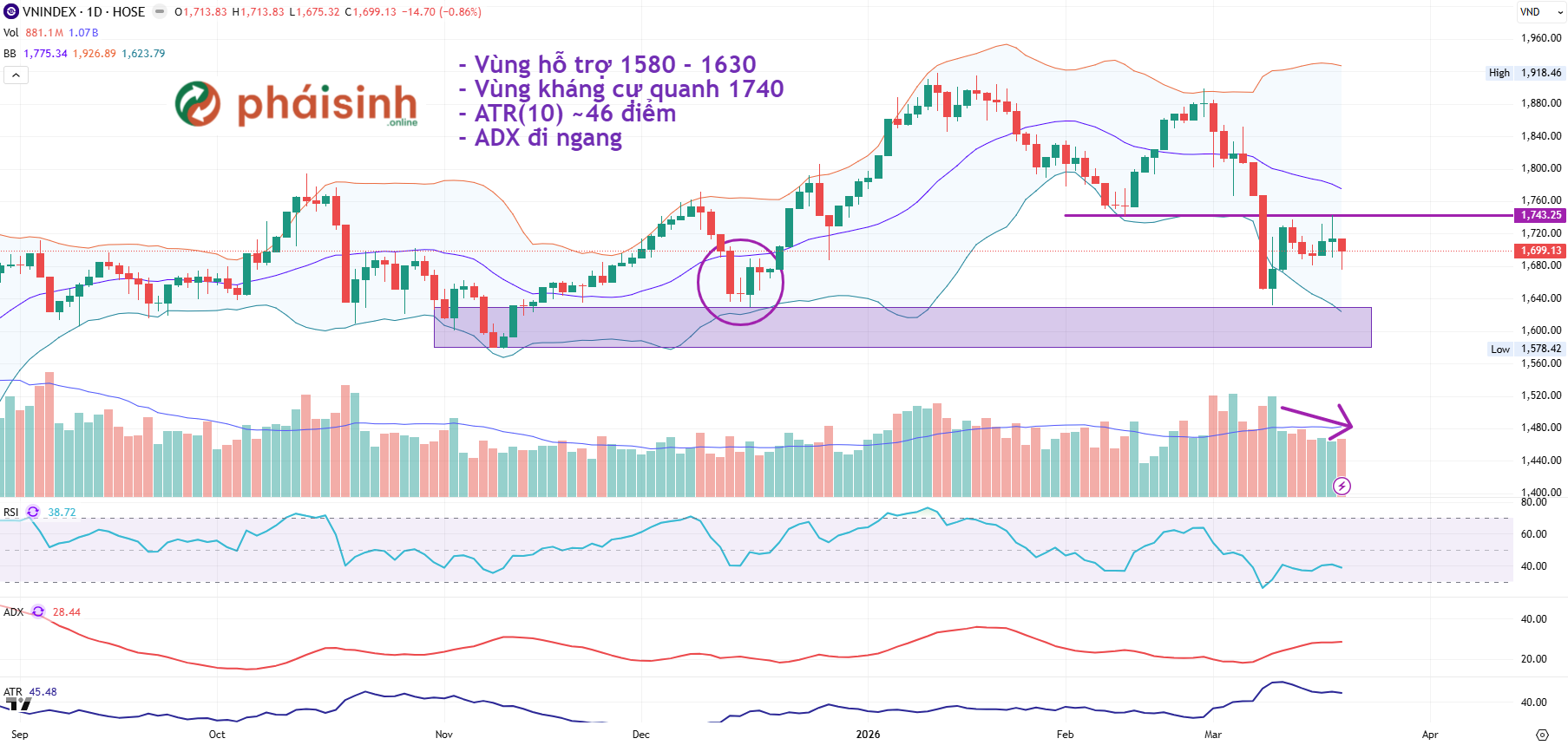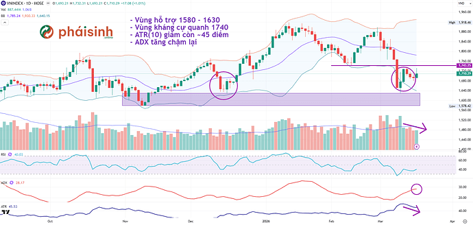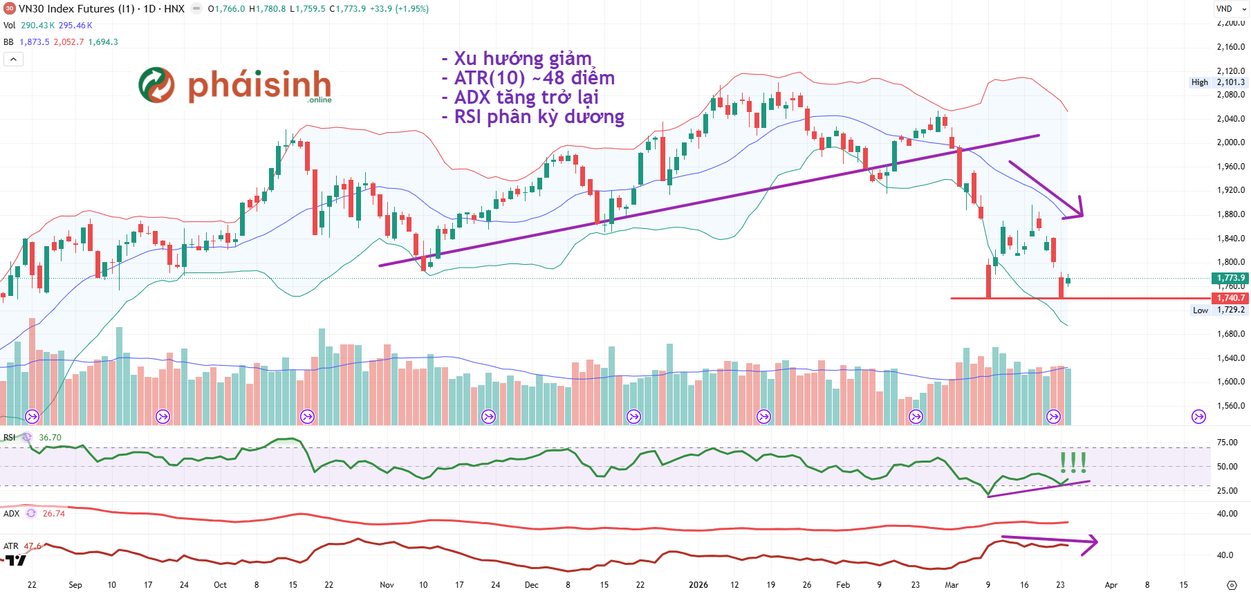 – ATR(10) ~29 điểm và tiếp tục giảm.