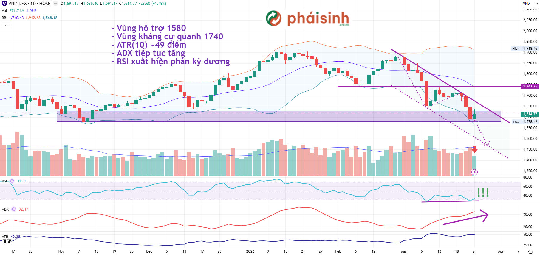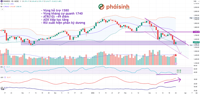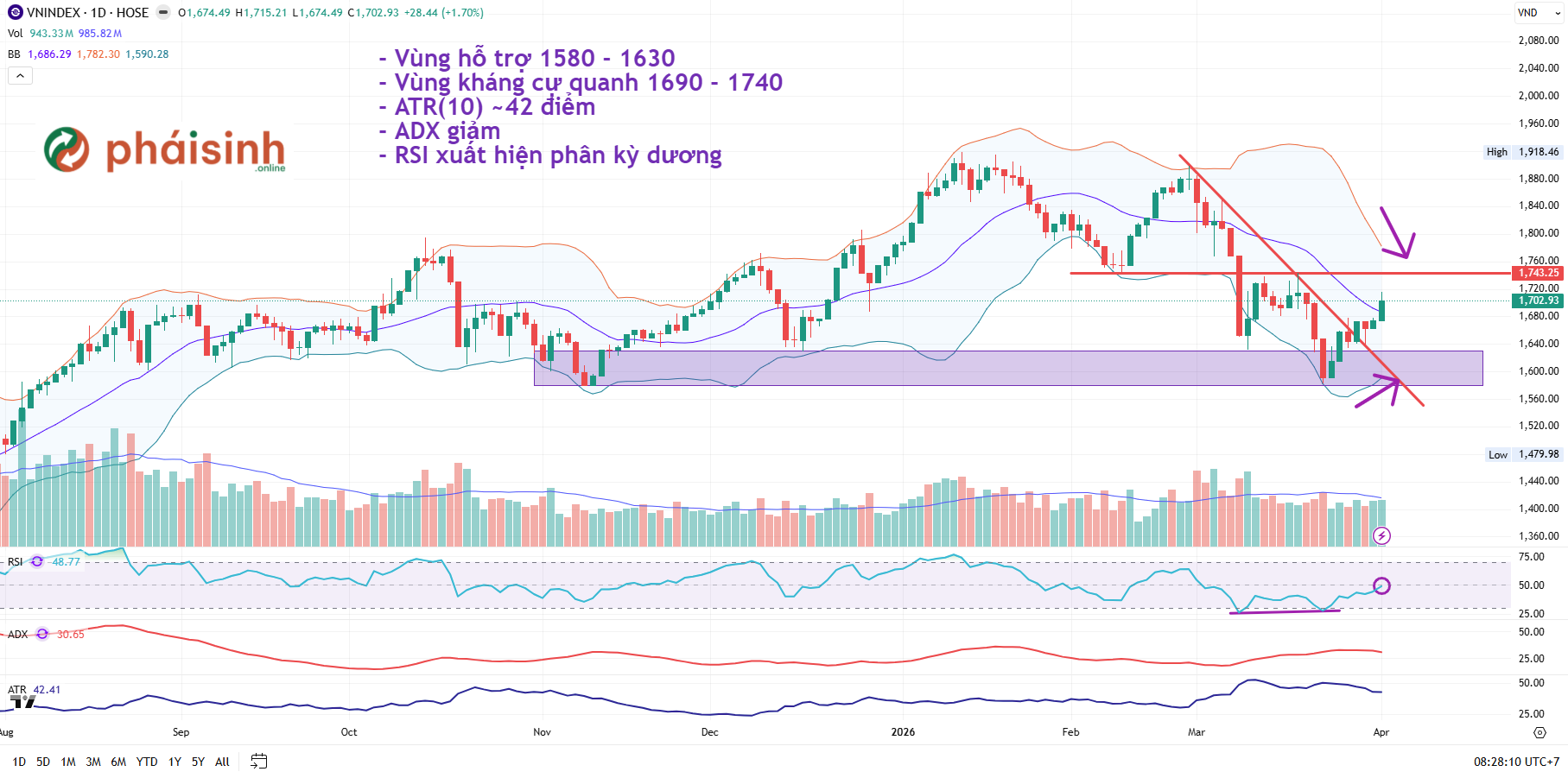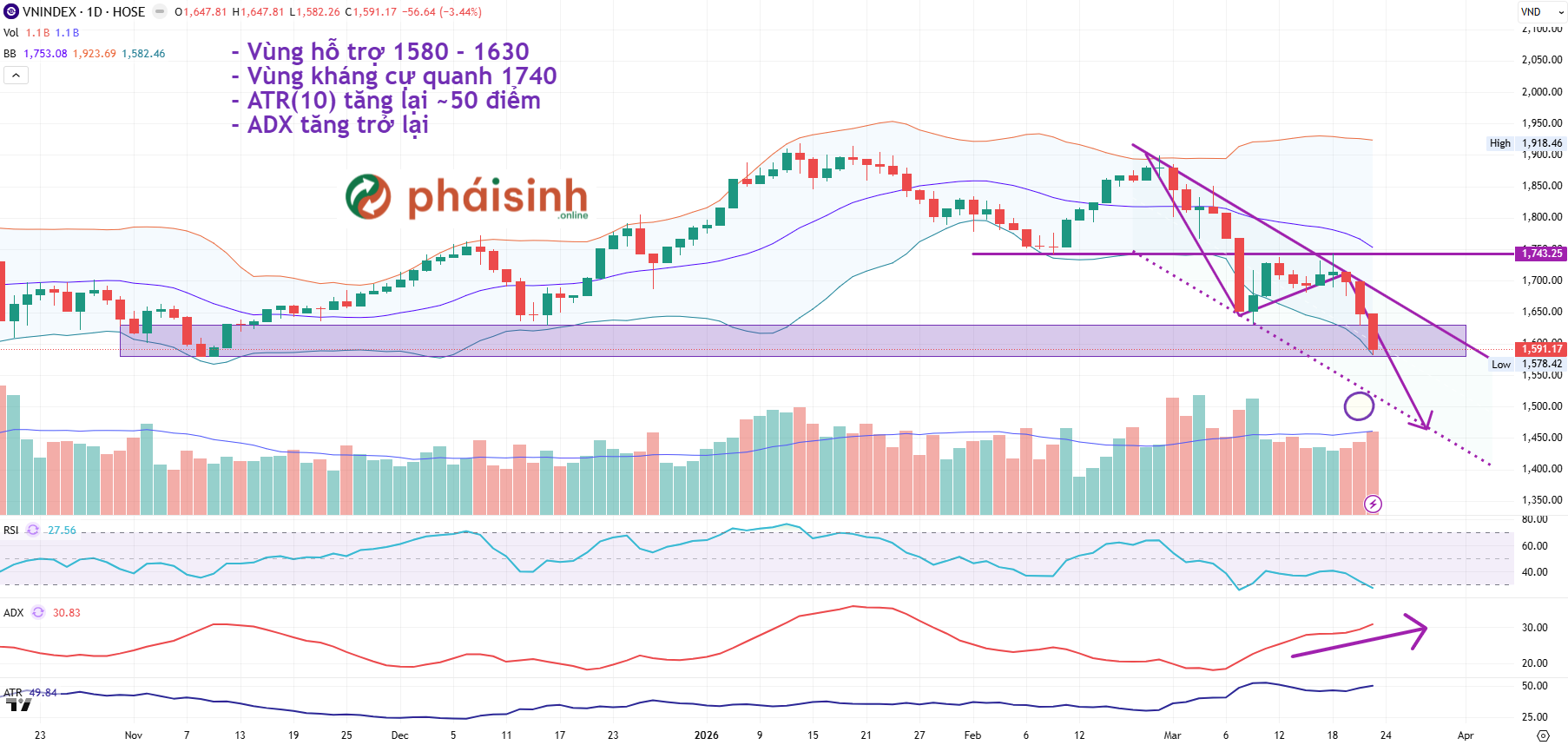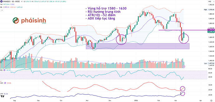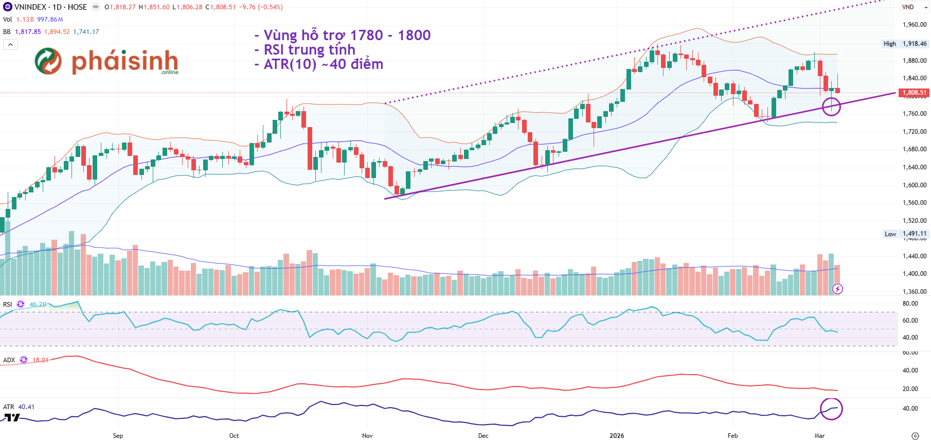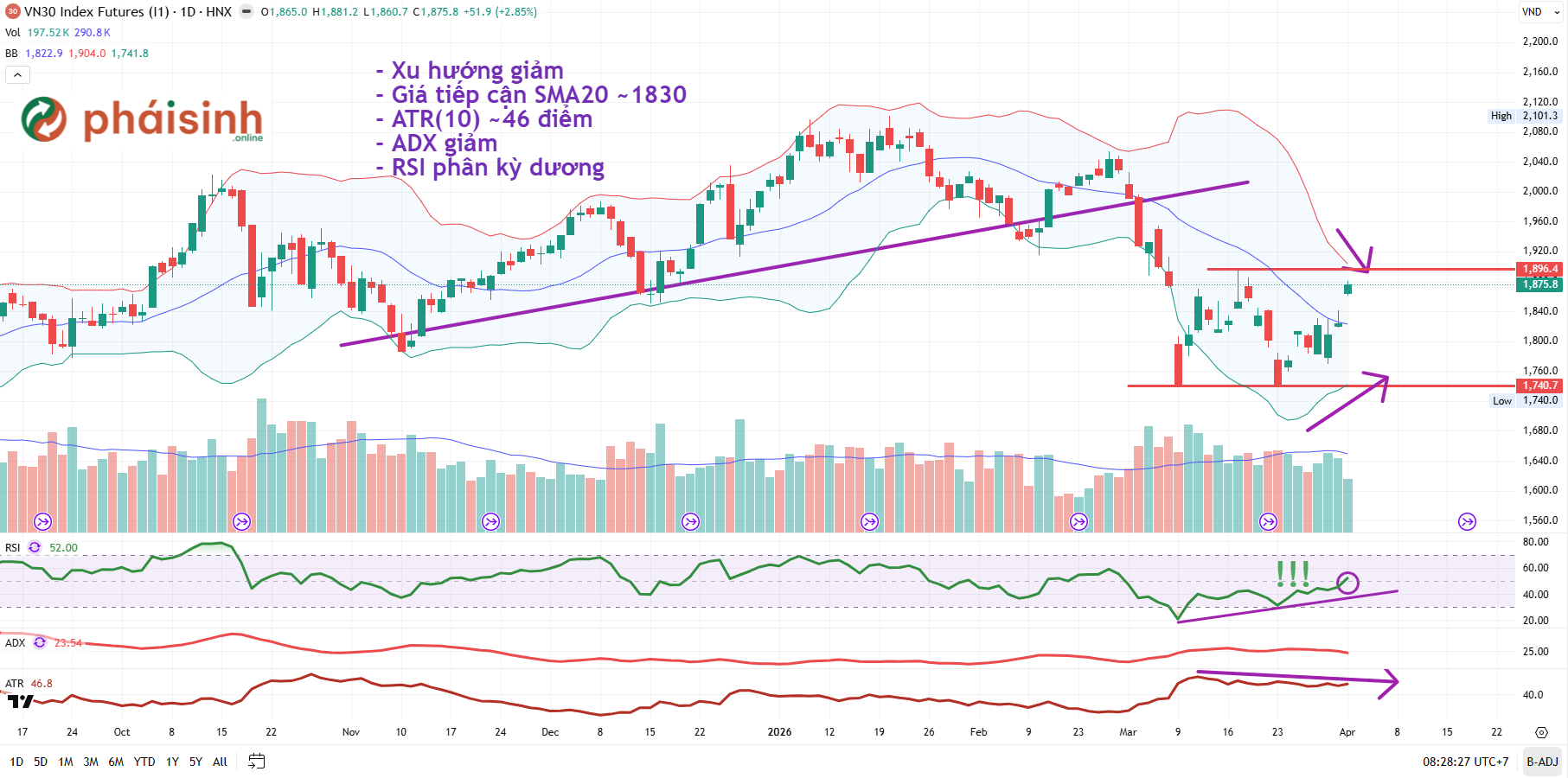 – ATR(10) ~29 điểm và tiếp tục giảm.