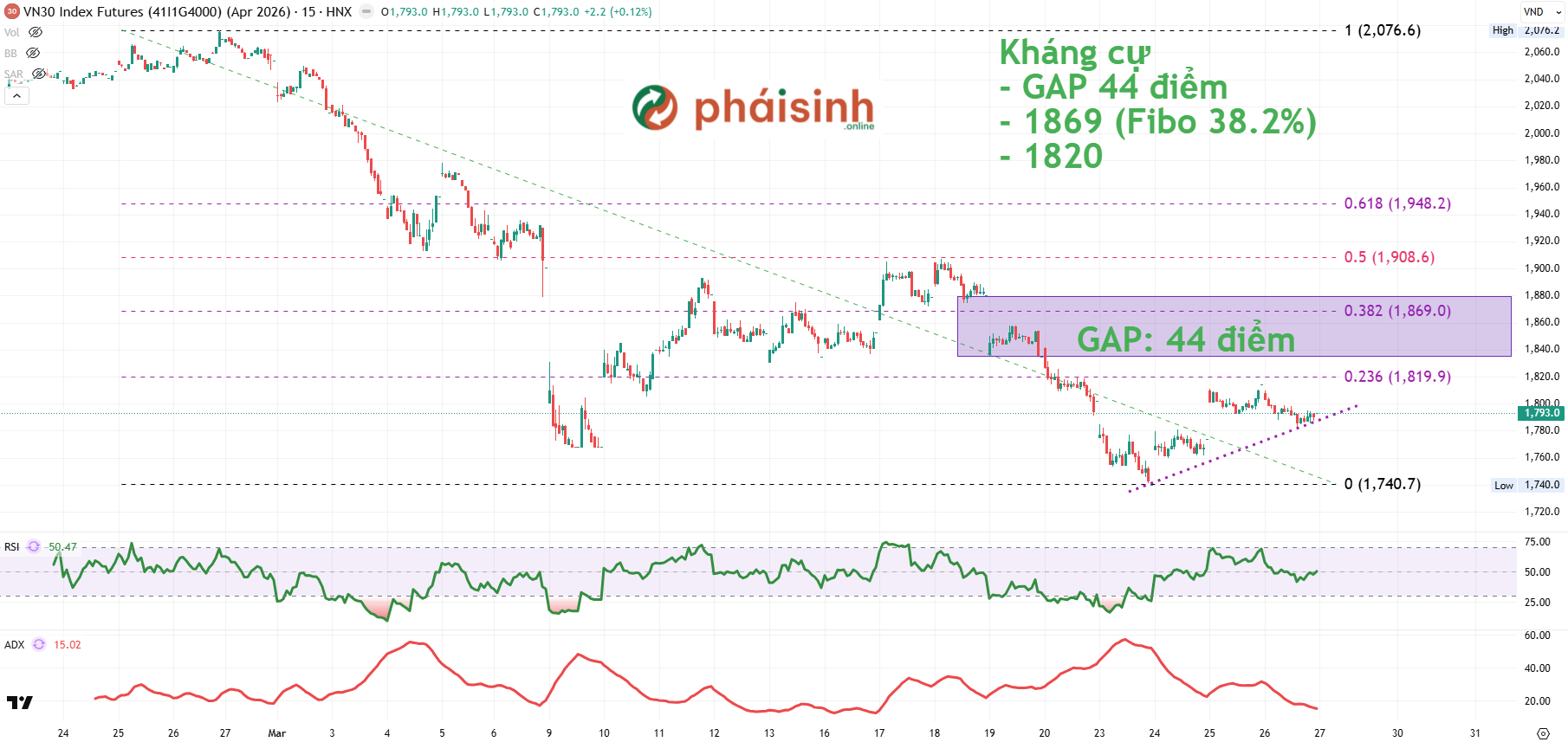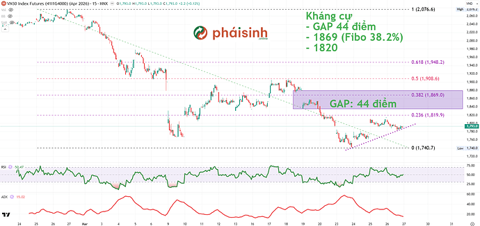– RSI tăng nhẹ, chưa thoát khỏi vùng trung tính.