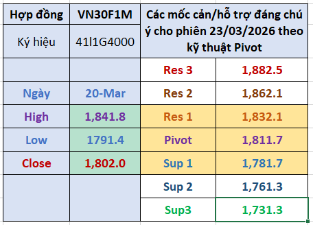 Các mức Pivot/Fibo vẫn tiếp tục đồng hành với chúng ta hôm nay. Một điều thú vị là Pivot không thay đổi nhiều so với phiên trước đó.