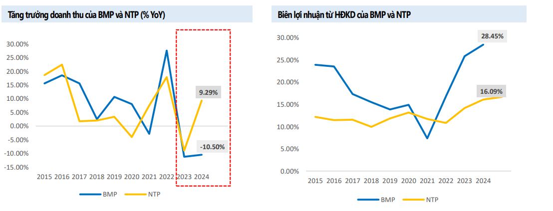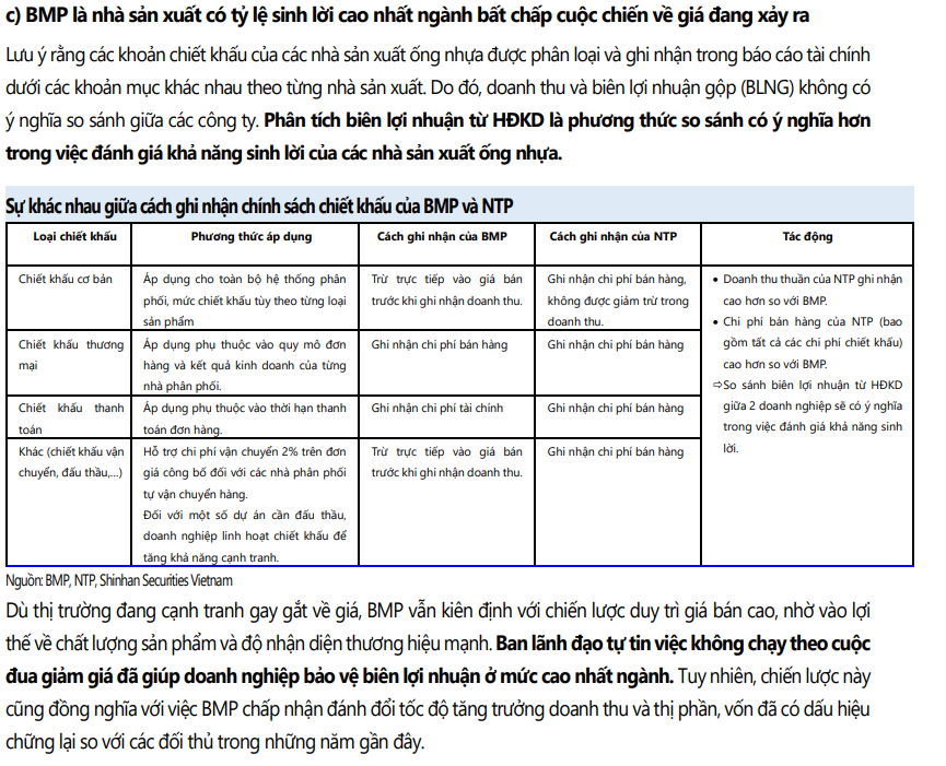 Doanh thu có sự chững là nguyên nhân chủ yếu là do các đối thủ cạnh tranh như NTP, HSG giảm giá bán, trong khi BMP thì không làm cho doanh thu có sự sụt giảm