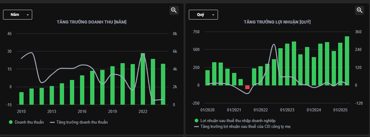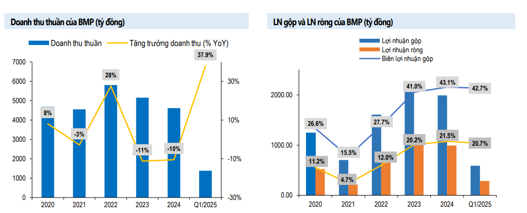 Tuy nhiên Lợi nhuận BMP có sự duy trì và tăng trưởng tốt, Quý 2/2025 là một trong những quý BMP đạt lợi nhuận kỉ lục với 330 tỷ