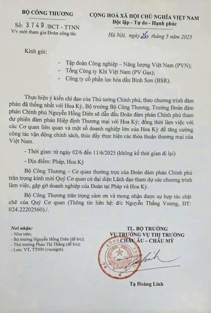 Bộ Công Thương và phái Đoàn đàm phán Chính phủ tham dự các chương trình tại Pháp và Hoa Kỳ vào ngày 2/6 đến 11/6/2025.